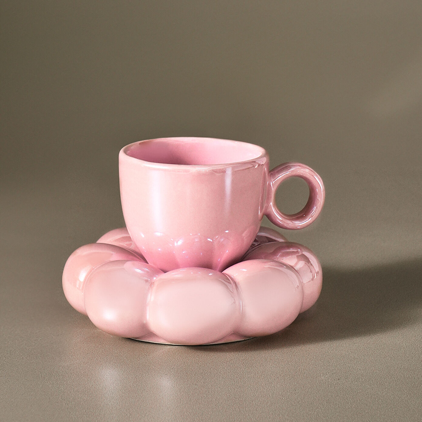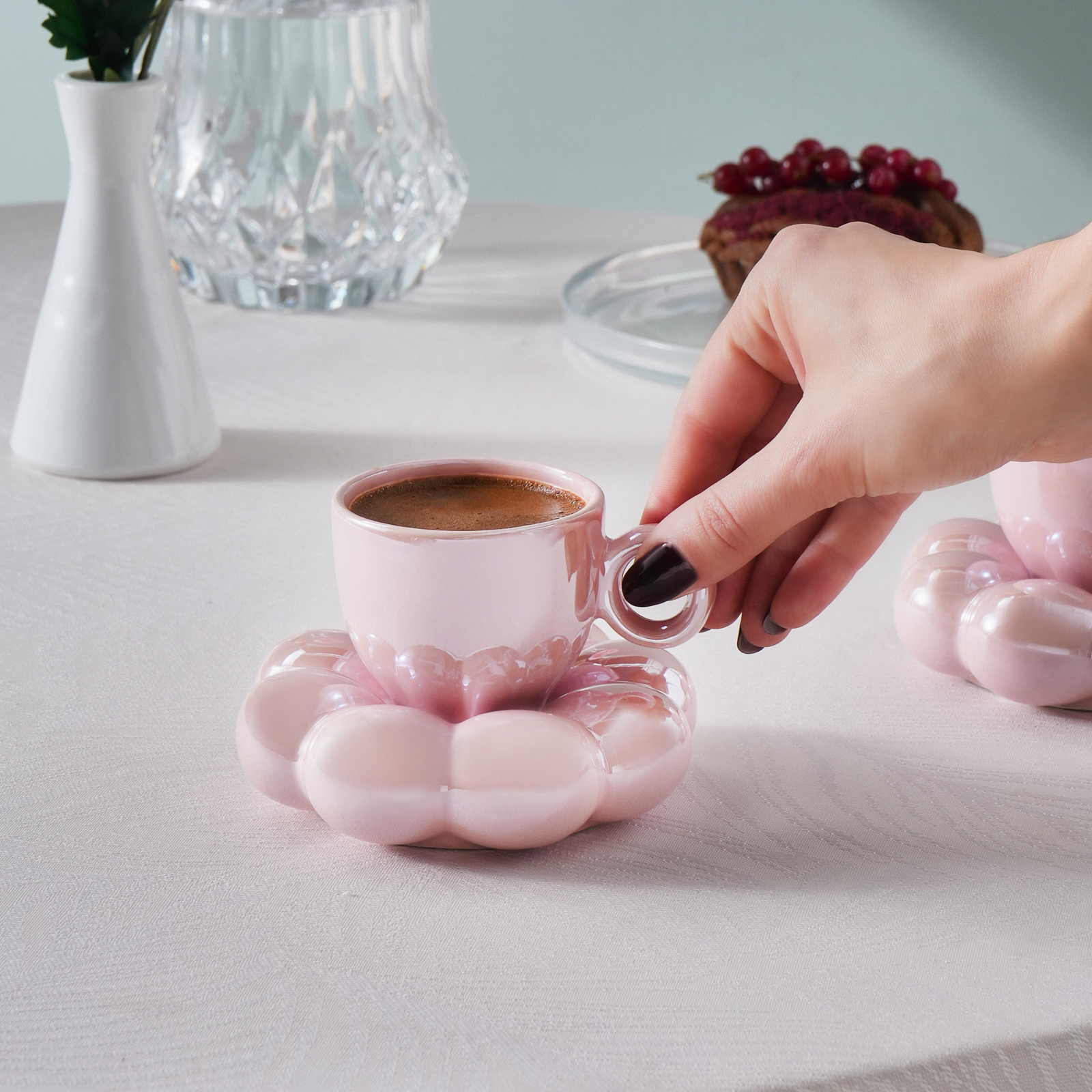Karaca Bubble Pembe Lüsterli 2 Kişilik Kahve Fincanı