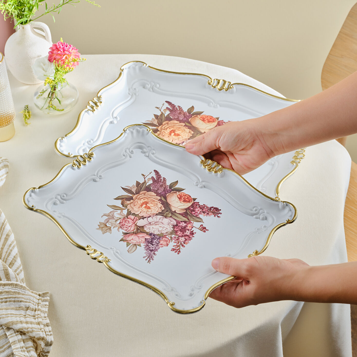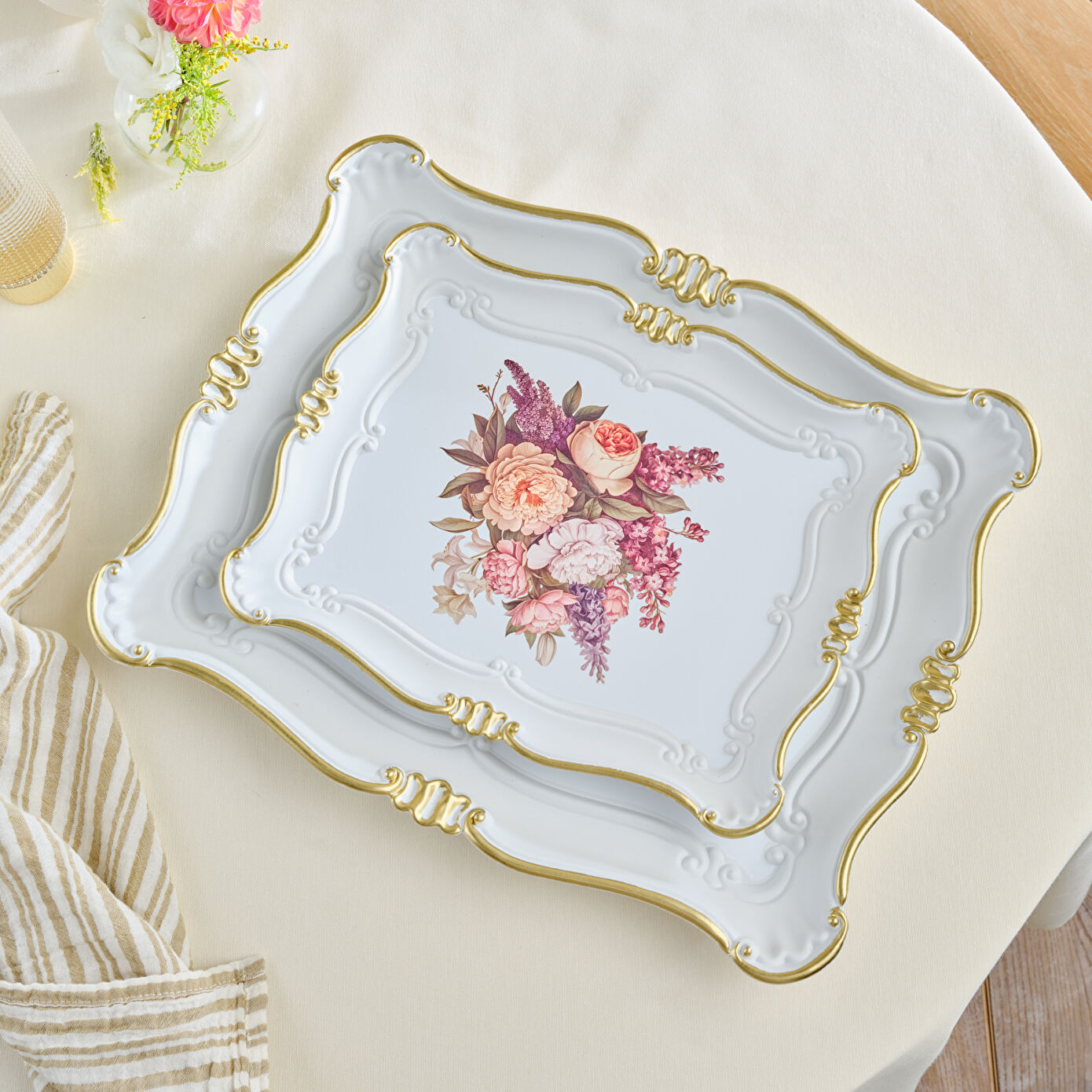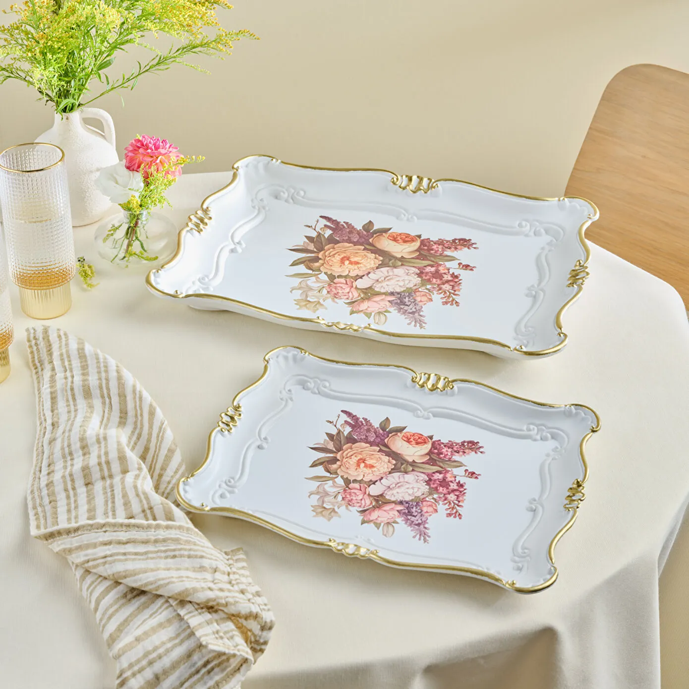 Karaca Buket İkili Dikdörtgen Tepsi 42 Cm