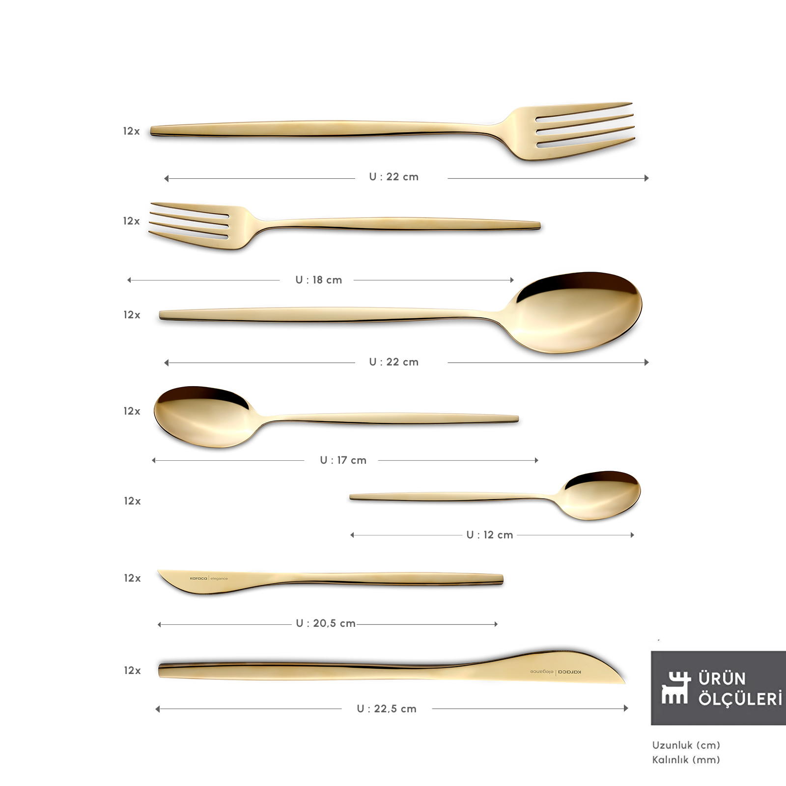 - 12 Kişilik Yemek Kaşığı:22 cm