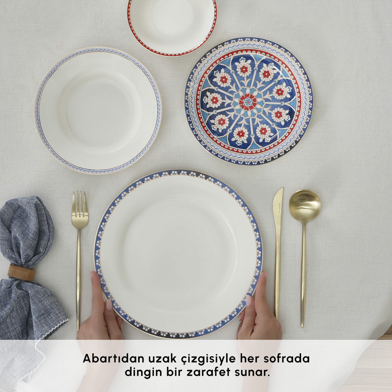 Kemik tozu içeren porselen yapısı sayesinde son derece hafif, aynı zamanda uzun ömürlü ve dayanıklıdır. Hem günlük kullanıma hem de özel davet sofralarına uyum sağlayan bu seri, zarif tasarımı kadar pratikliğiyle de fark yaratır.