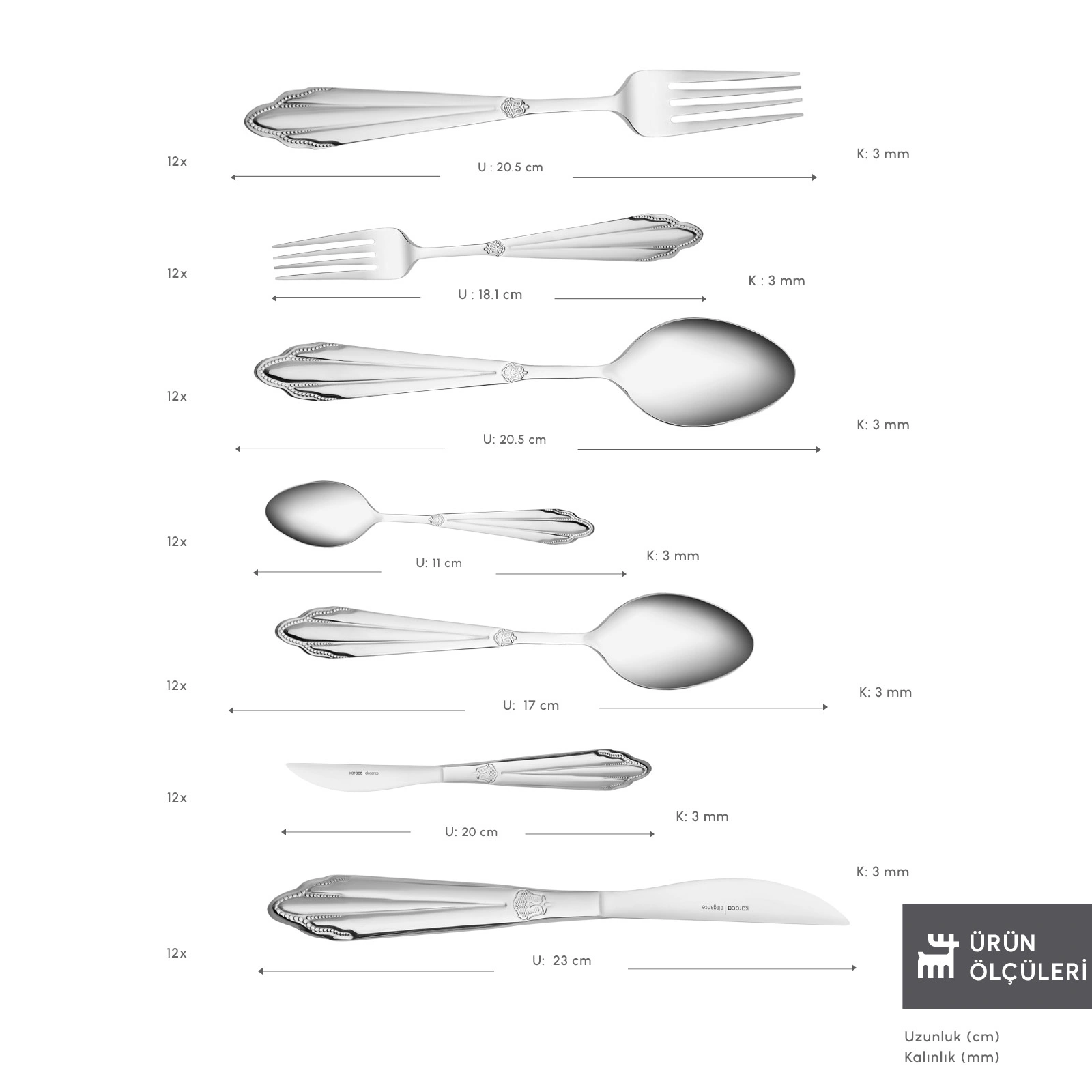 Karaca Red Carpet Collection Elegance New Mantilla 12 Kişilik 84 Parça Çatal Kaşık Bıçak Takımı