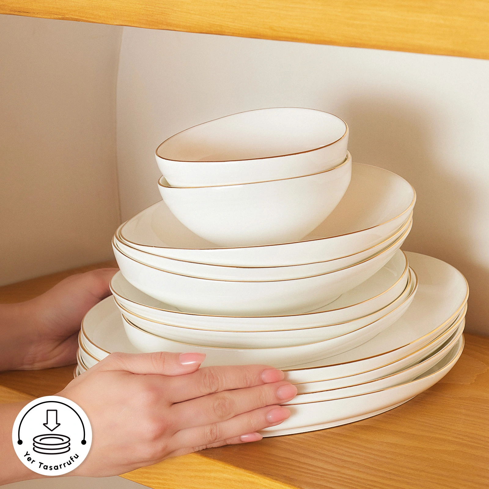 Karaca Red Carpet Collection Fine Pearl Extra Wilderness 62 Parça 12 Kişilik Yemek Takımı Gold
