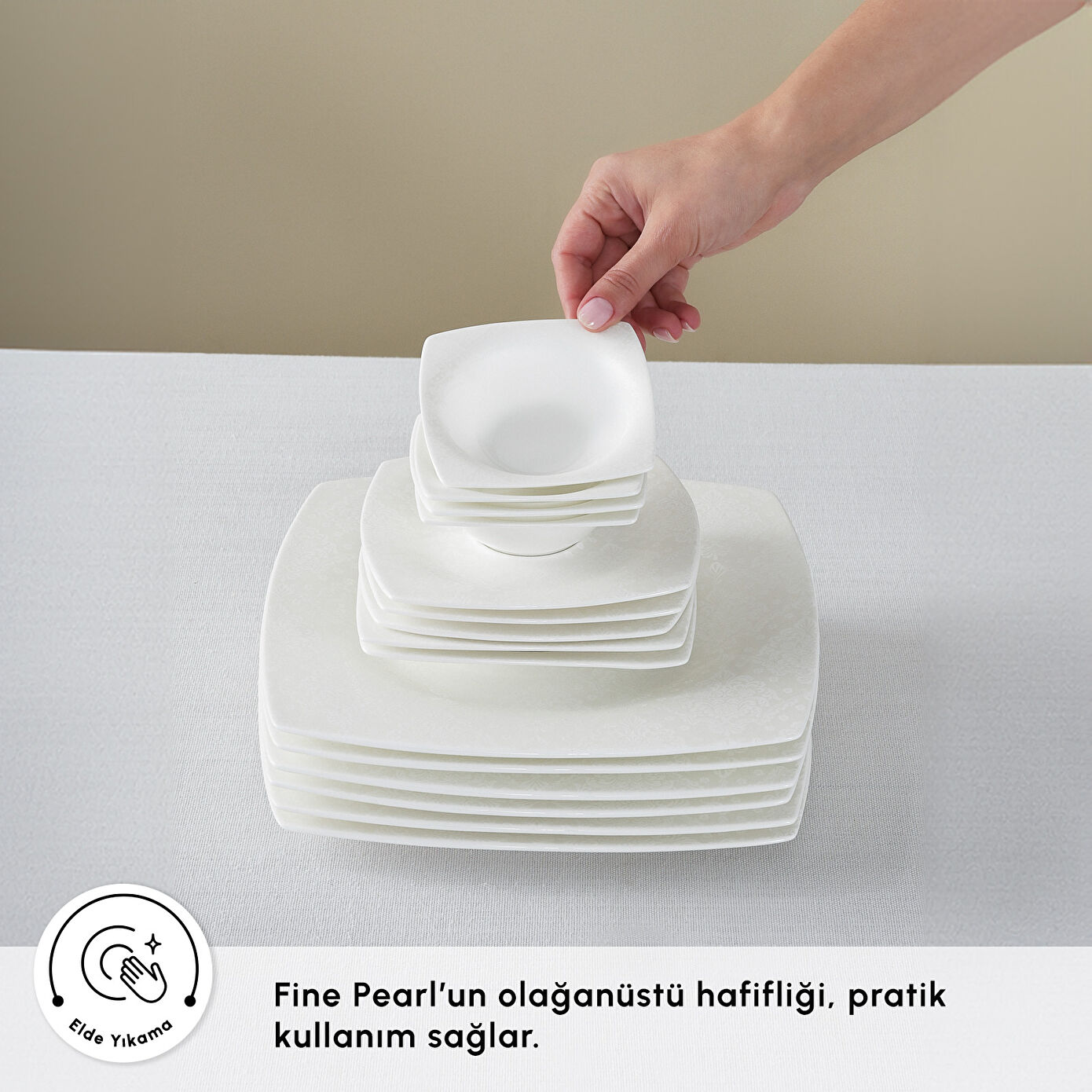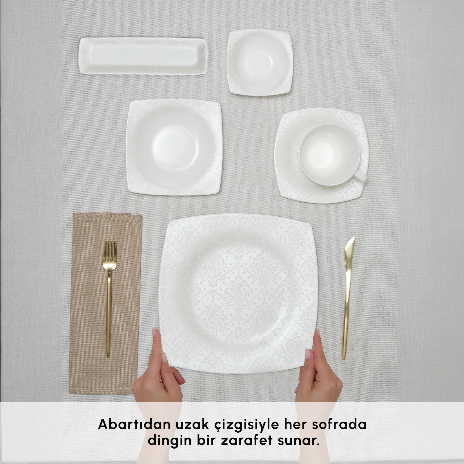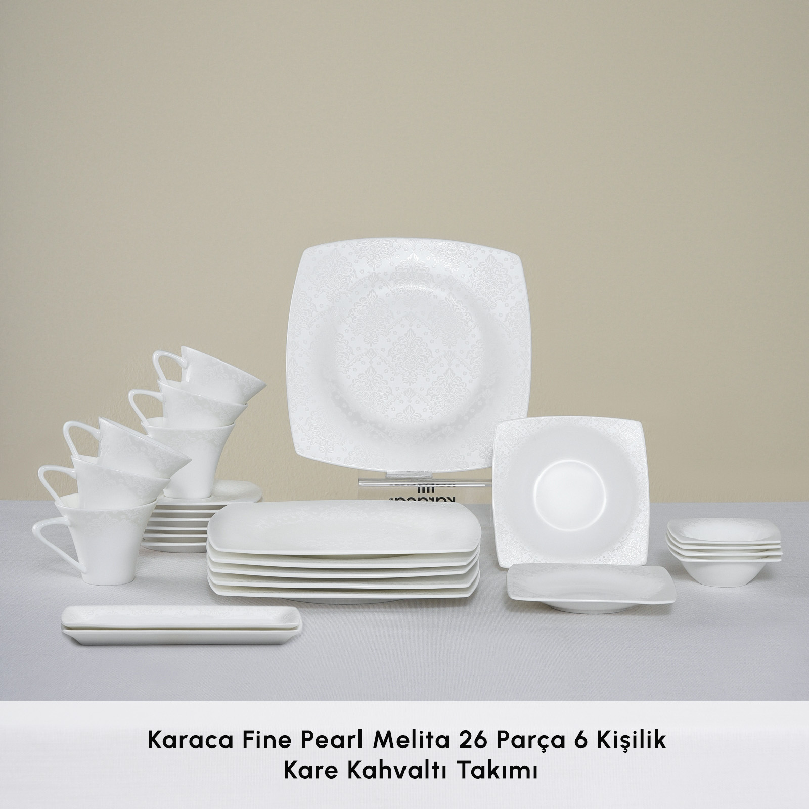 Karaca Fine Pearl Melita 26 Parça 6 Kişilik Kare Kahvaltı/Servis Takımı