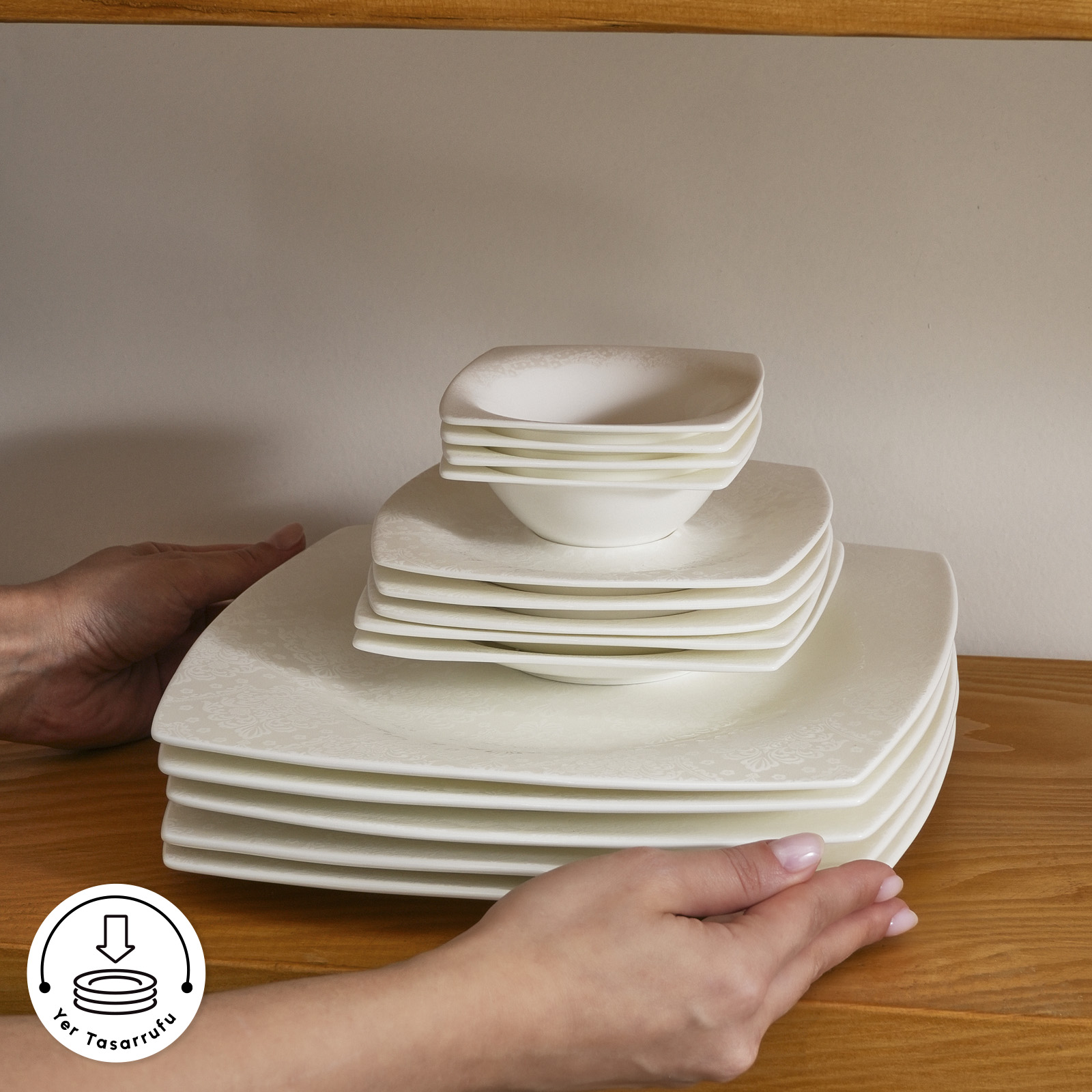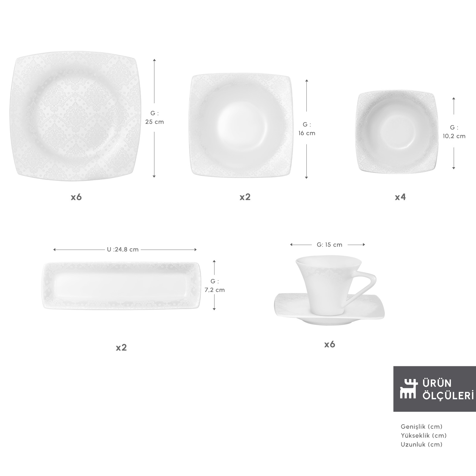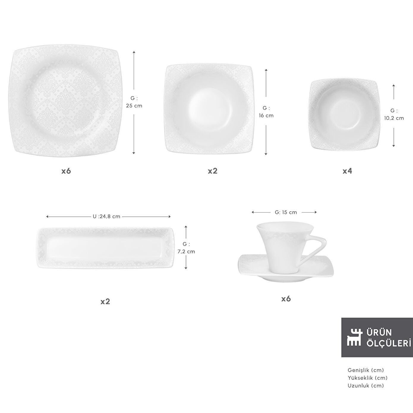 Karaca Fine Pearl Melita 26 Parça 6 Kişilik Kare Kahvaltı/Servis Takımı