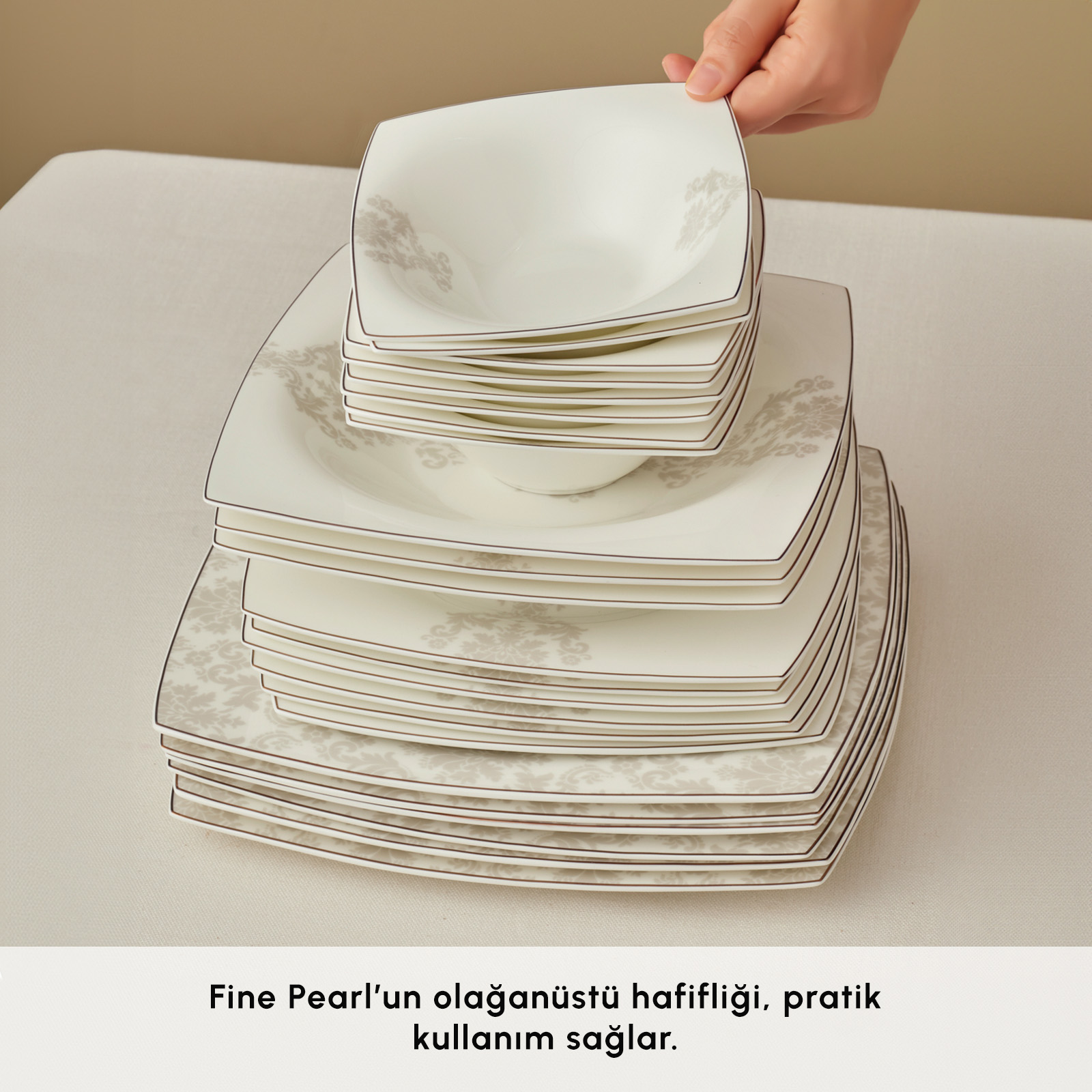 Fine Pearl Extra, sadece bir yemek takımı değil; aynı zamanda sofranızda sergilenecek bir sanat eseri. Altın detaylarla süslenen bu özel tasarım, hem klasik hem modern sunumlara uyum sağlayarak sofranıza ihtişamlı bir dokunuş katar.