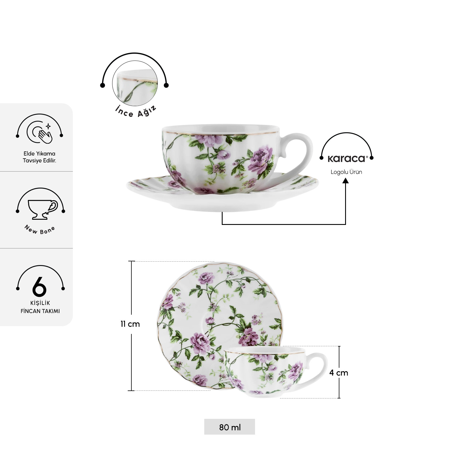 Karaca Flora 6 Kişilik Kahve Fincan Takımı 90 ml