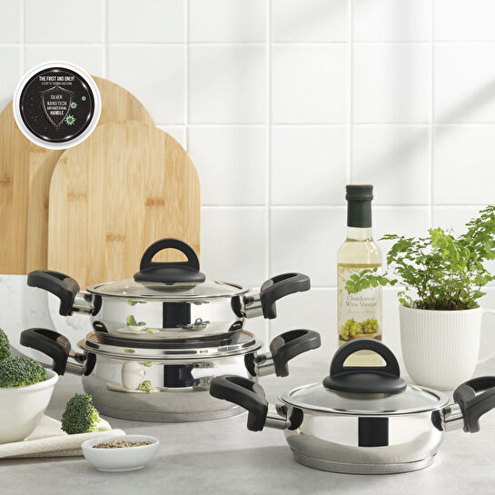 Karaca Florya 6 Parça Siyah Antibakteriyel Kulplu Çelik Sahan Set