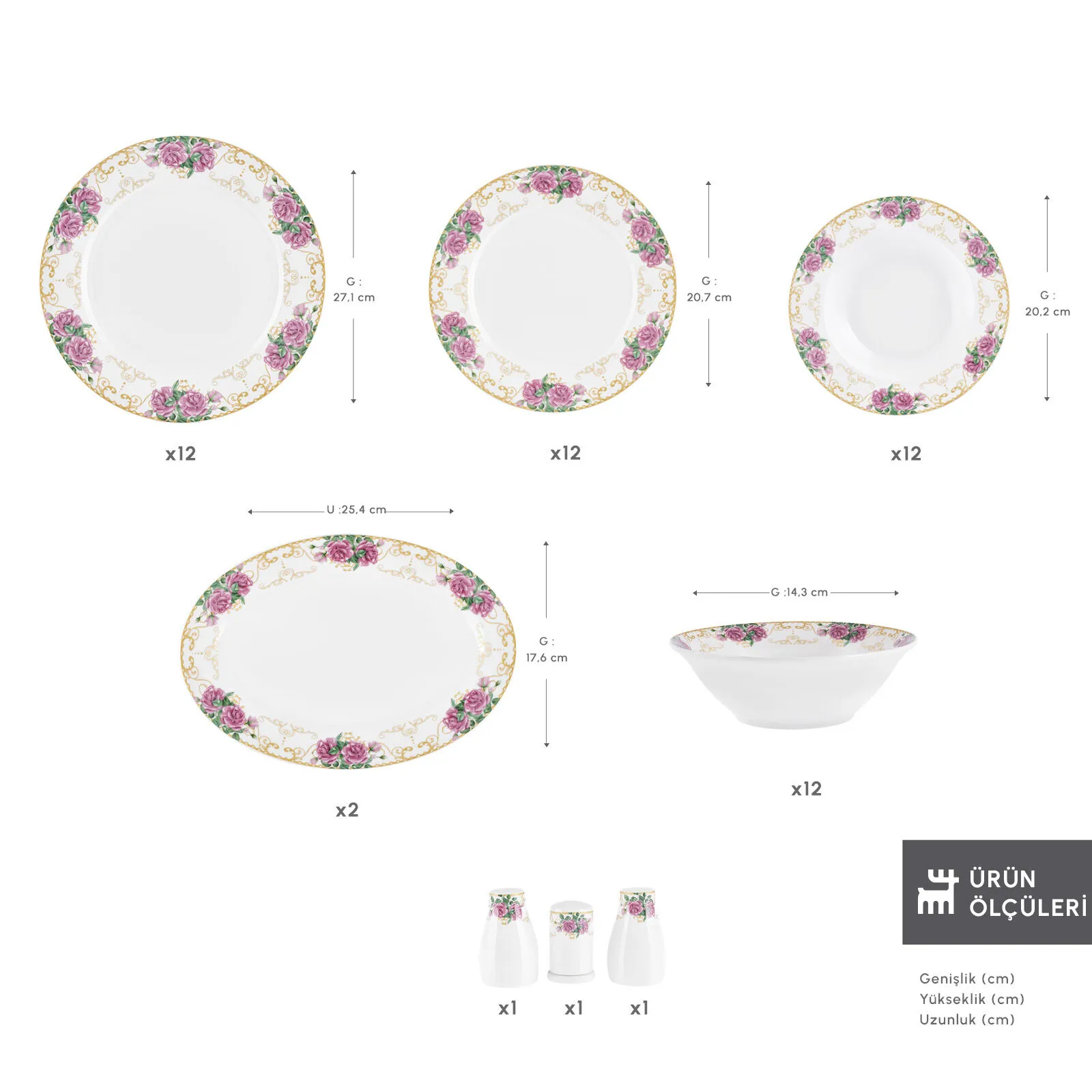 Karaca Forever Bone Gülizar 53 Parça 12 Kişilik Yemek Takımı