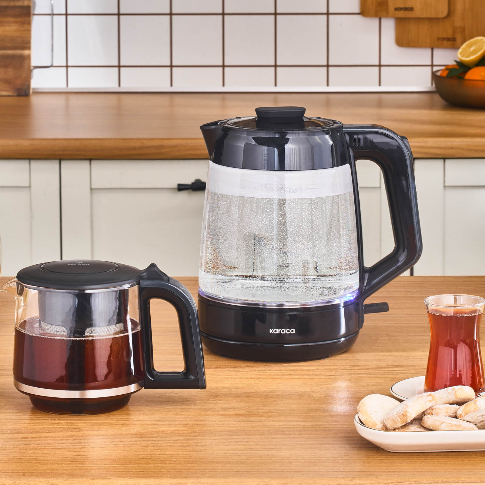 Tüm kullanımların yanında, çay demliği ve su ısıtıcısının cam yapısı sayesinde sağlıklı ve uzun ömürlü bir kullanım sunar.