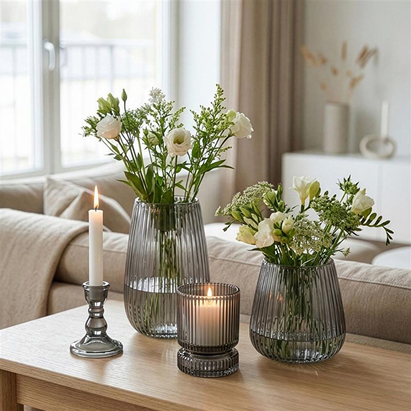 Karaca Home Boris Cam Şamdan Antrasit 6,5 x 6,5 x 9 cm