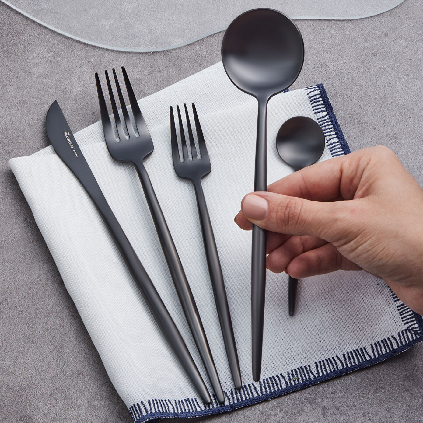 Karaca Jüpiter 60 Parça 12 Kişilik Çatal Kaşık Bıçak Takımı Matte Black