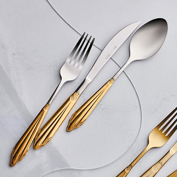 Karaca Mantilla 84 Parça 12 Kişilik Alt Desenli Gold Kutulu Çatal Kaşık Bıçak Takımı