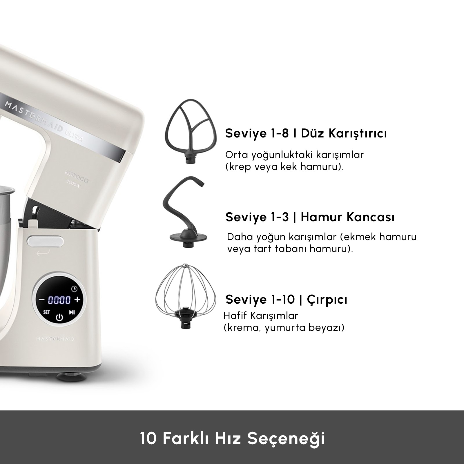 Karaca Mastermaid Chef Ultra D2000W Dijital Ekranlı Hamur Yoğurma Makinesi Starlight 7L