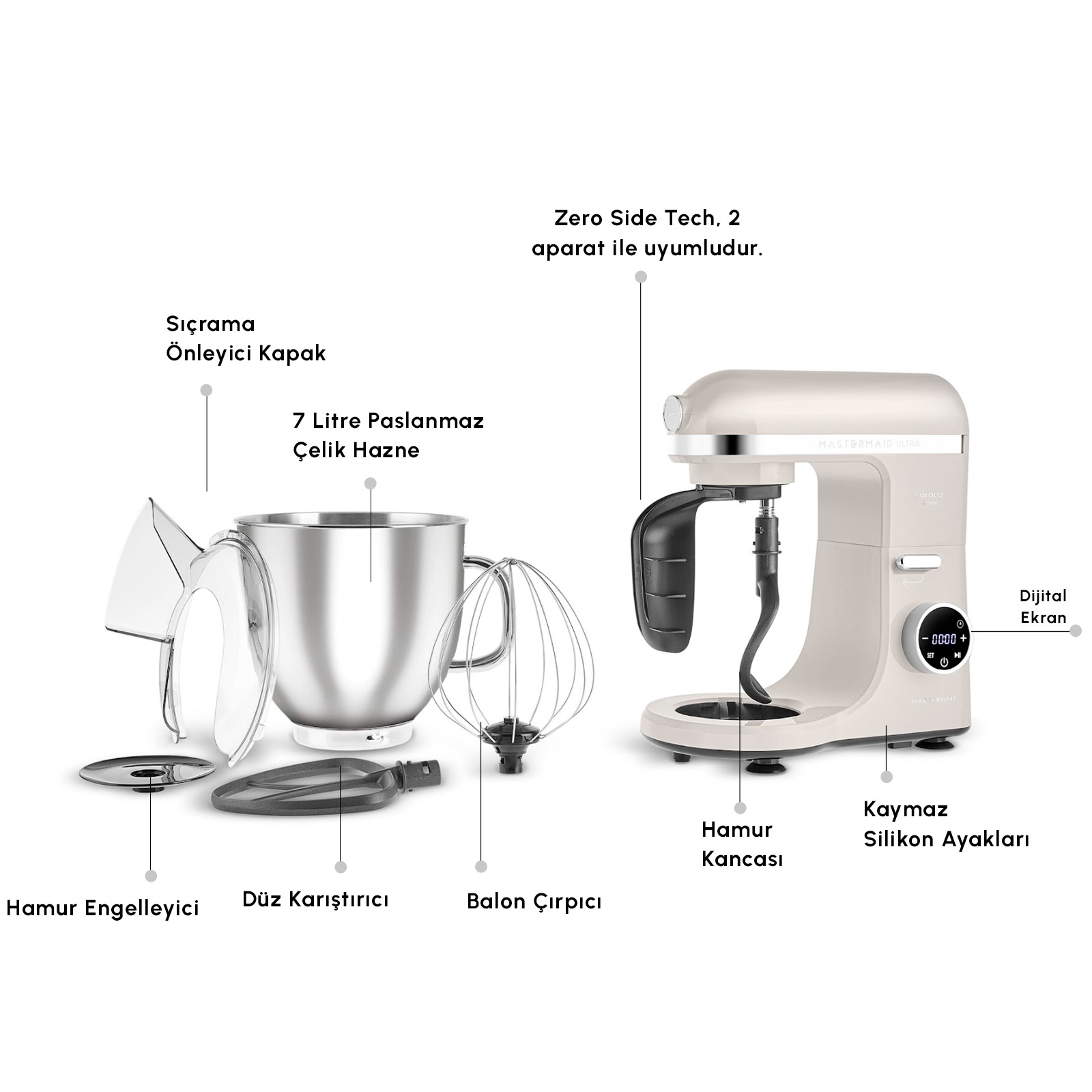 - Zero Side Tech teknolojisiyle hazne duvarlarında hiç karışmamış hamur bırakmaz, her noktayı homojen şekilde karıştırır.