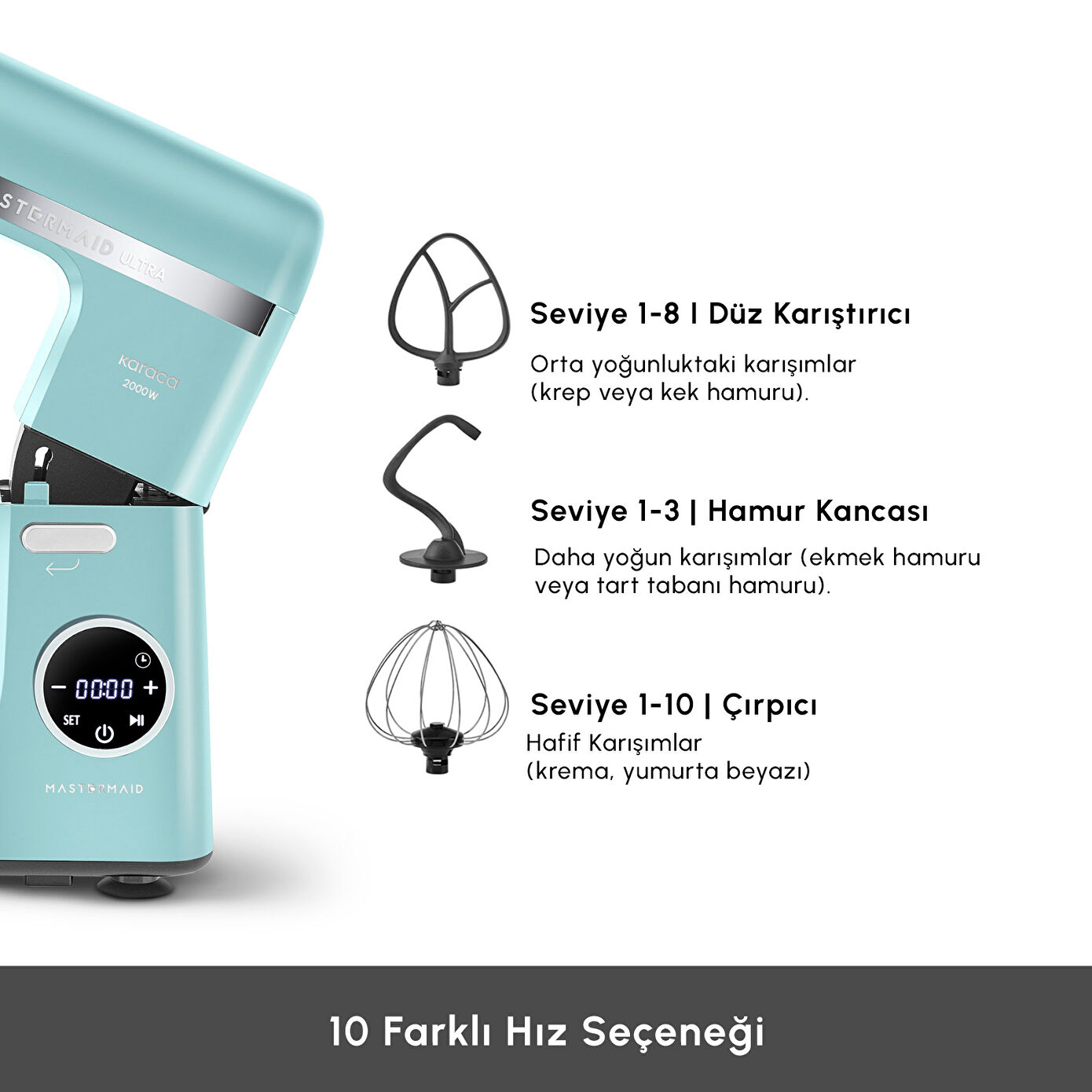 Karaca Mastermaid Chef Ultra D2000W Dijital Ekranlı Hamur Yoğurma Makinesi Tiffany 7L