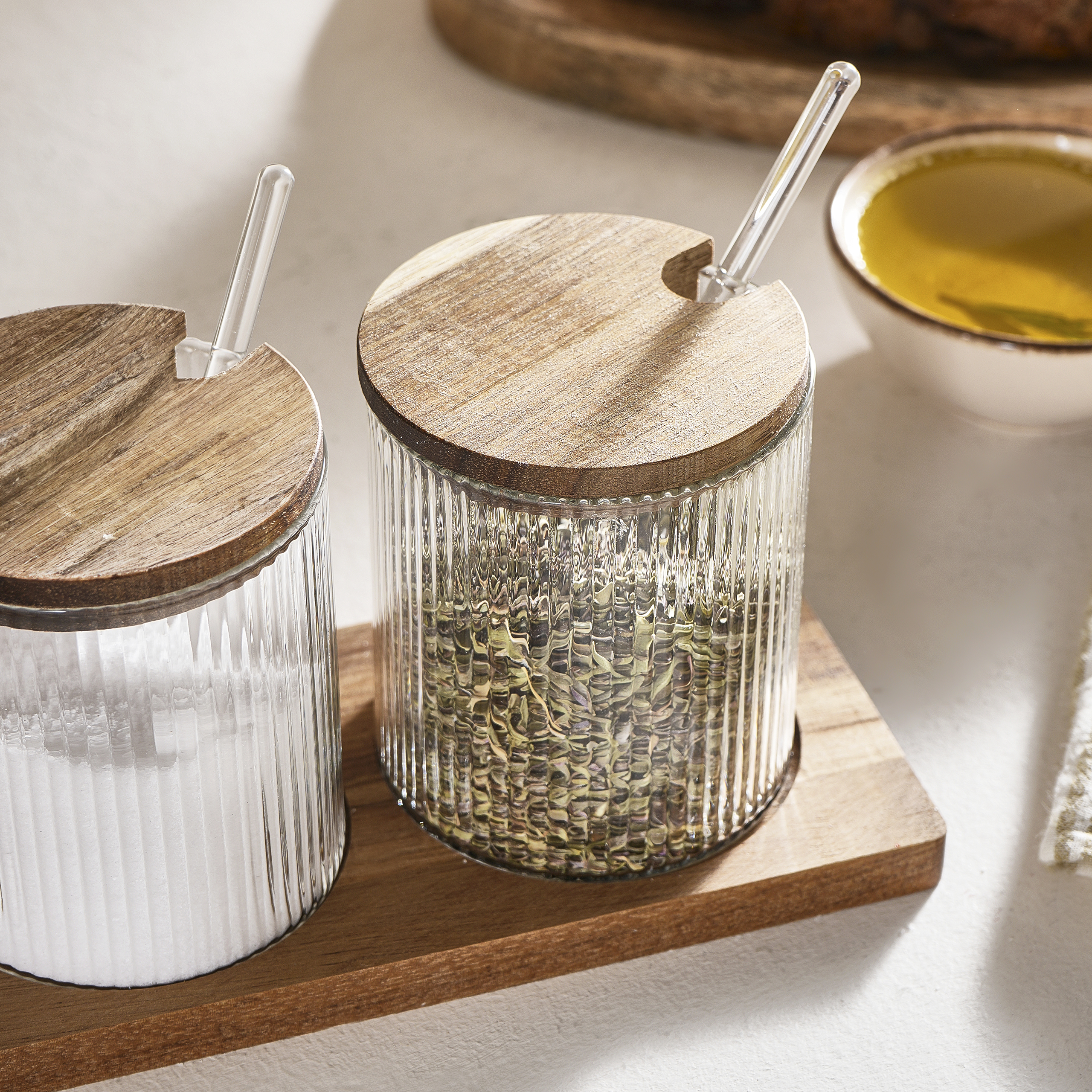 Karaca Mova Akasya 3'lü Cam Kaşıklı Baharat Takımı