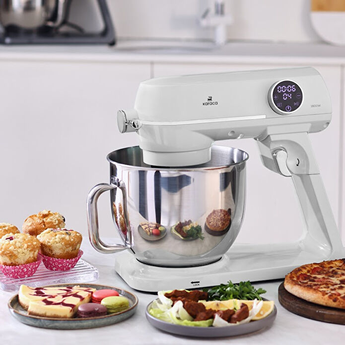 Karaca Multichef Artisan Digital Ekran Döküm Stand Mikser Pearl White 1800W 7L