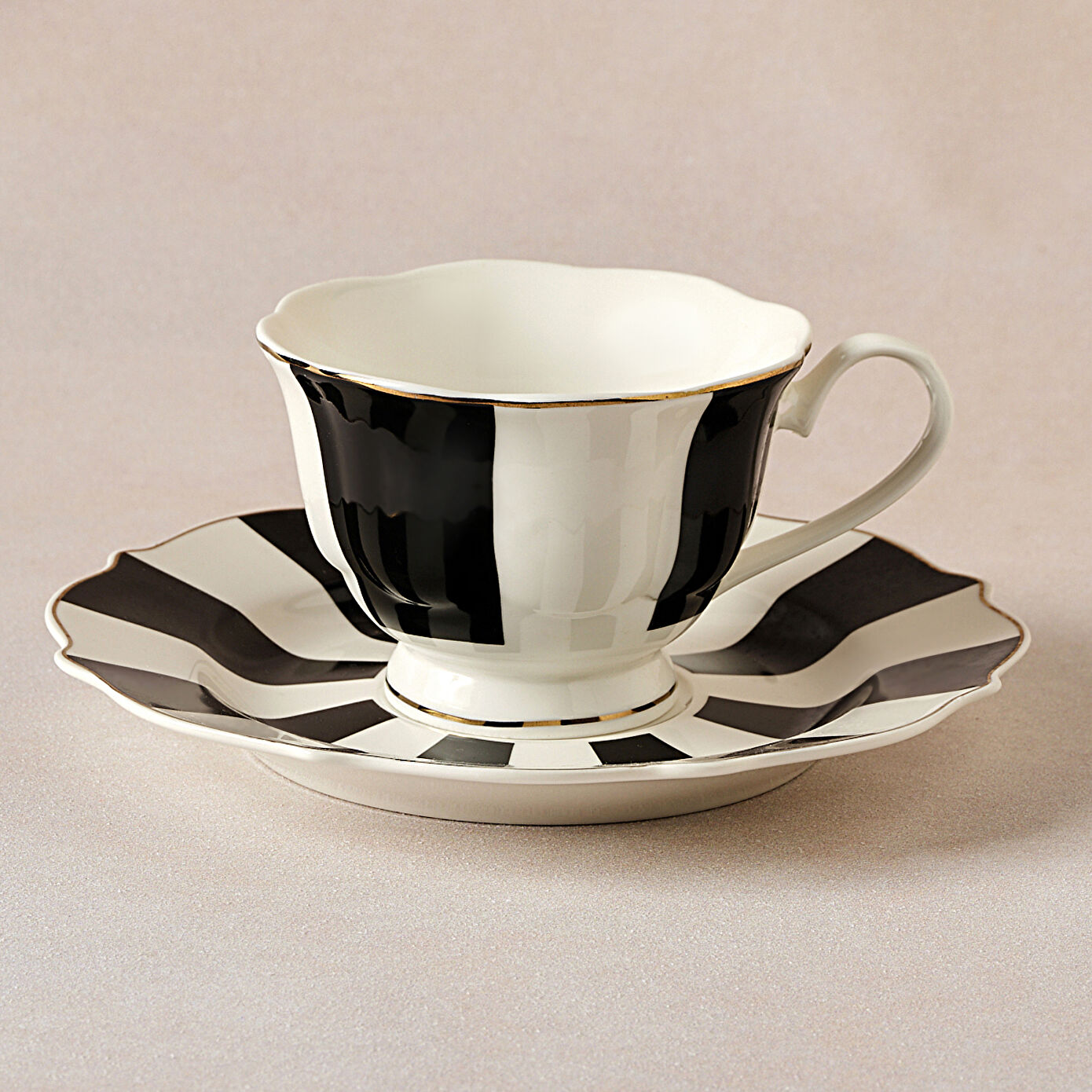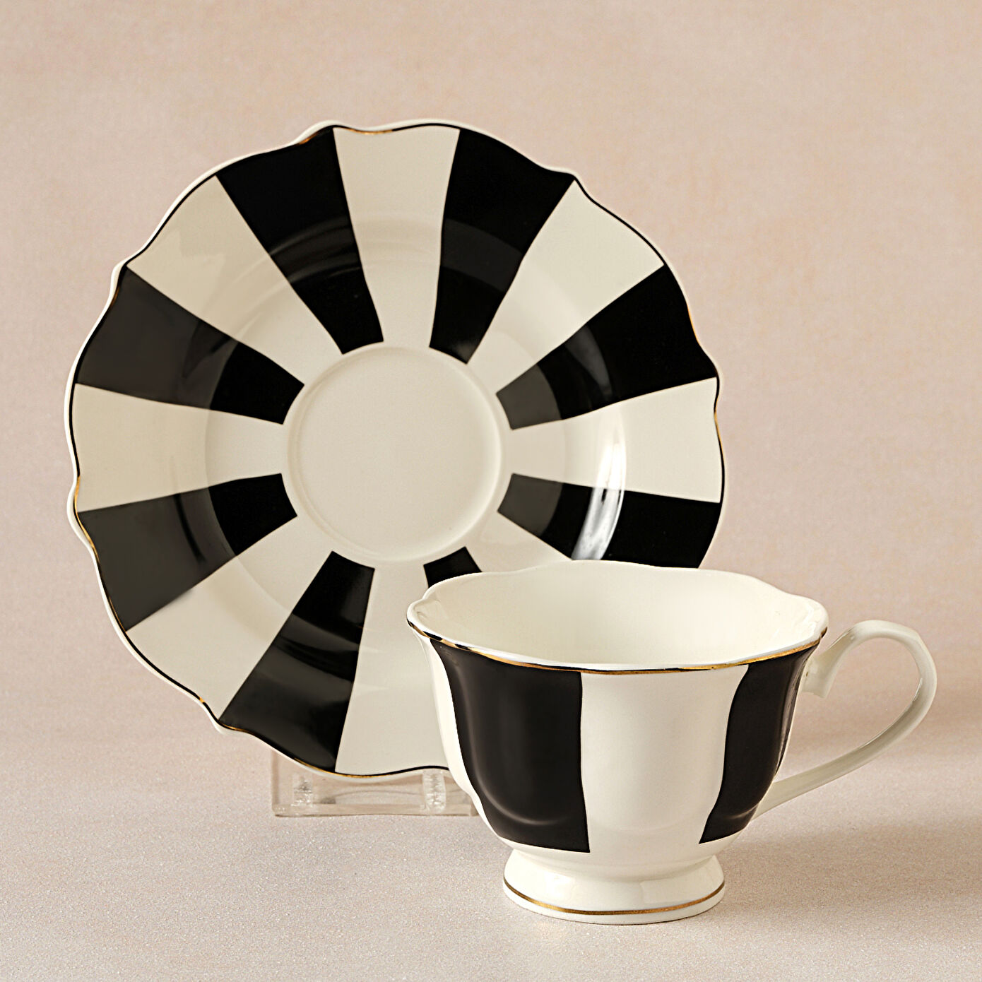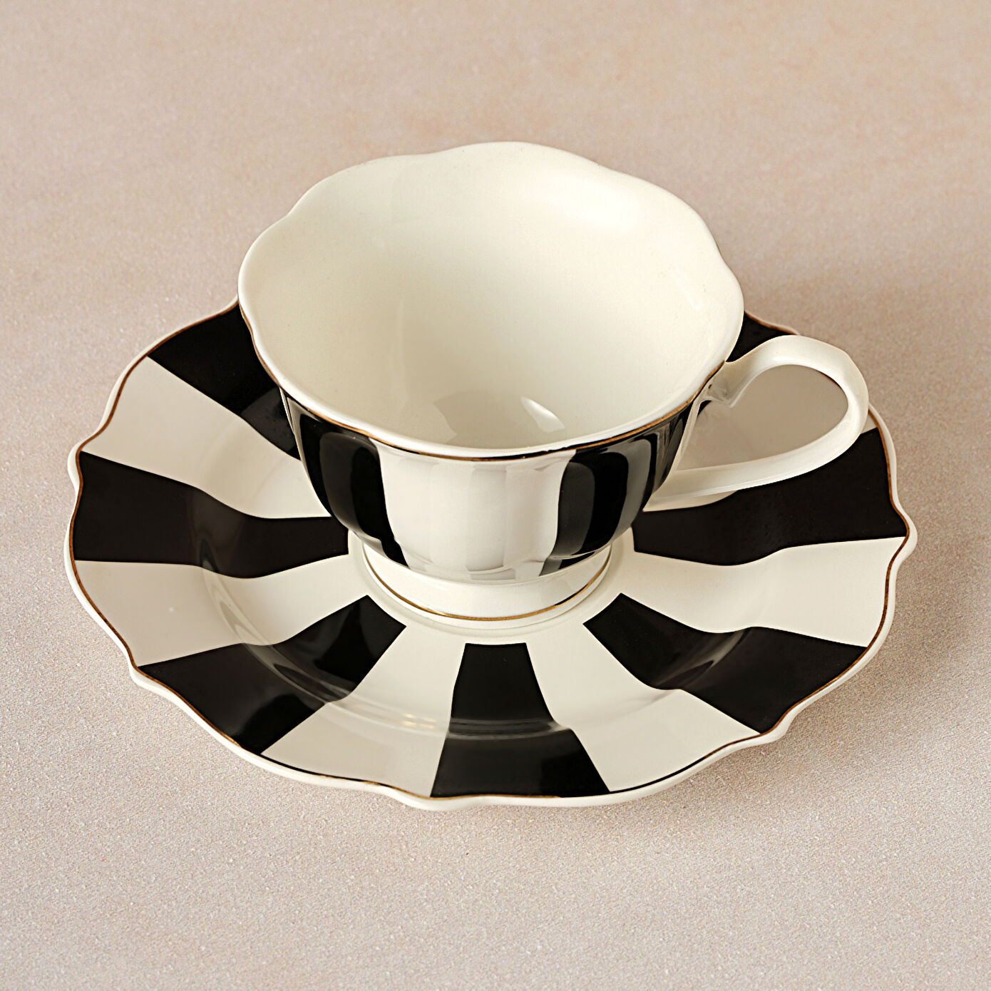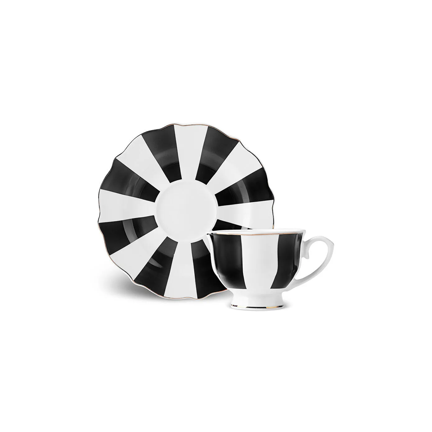 Karaca New Romantic Kalın Çizgili Kahve Fincanı Siyah 90 ml