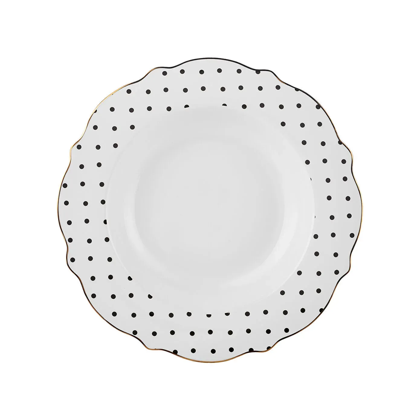 Karaca New Romantic Puantiyeli Çukur Tabak 24 cm Siyah
