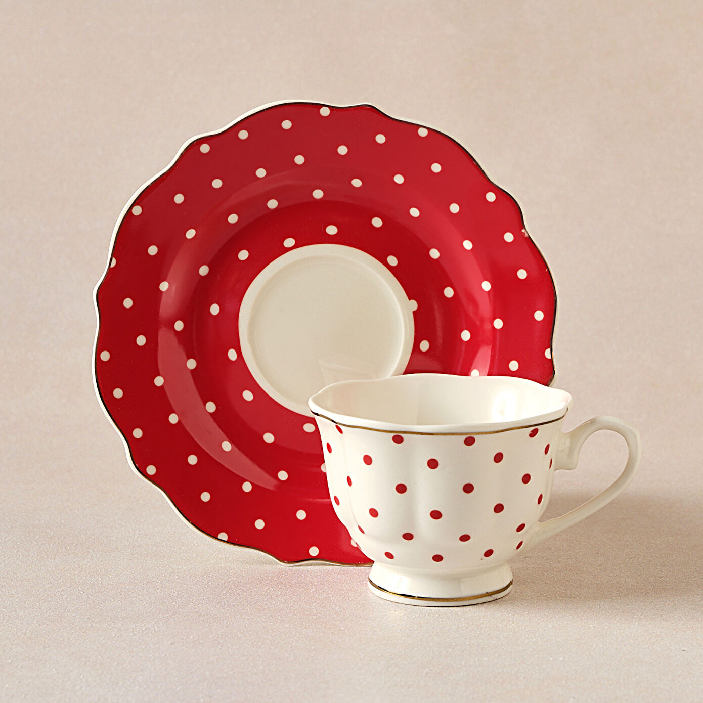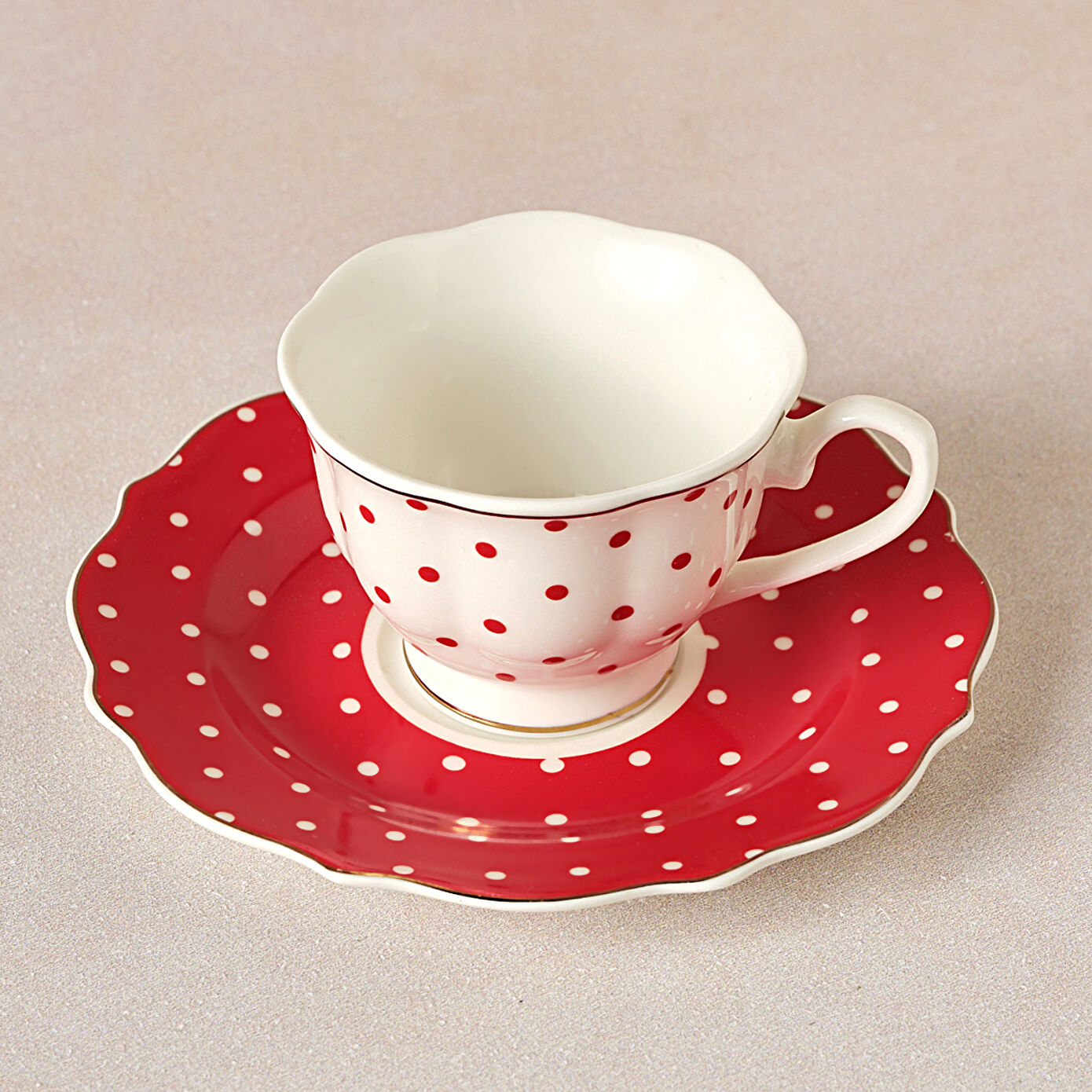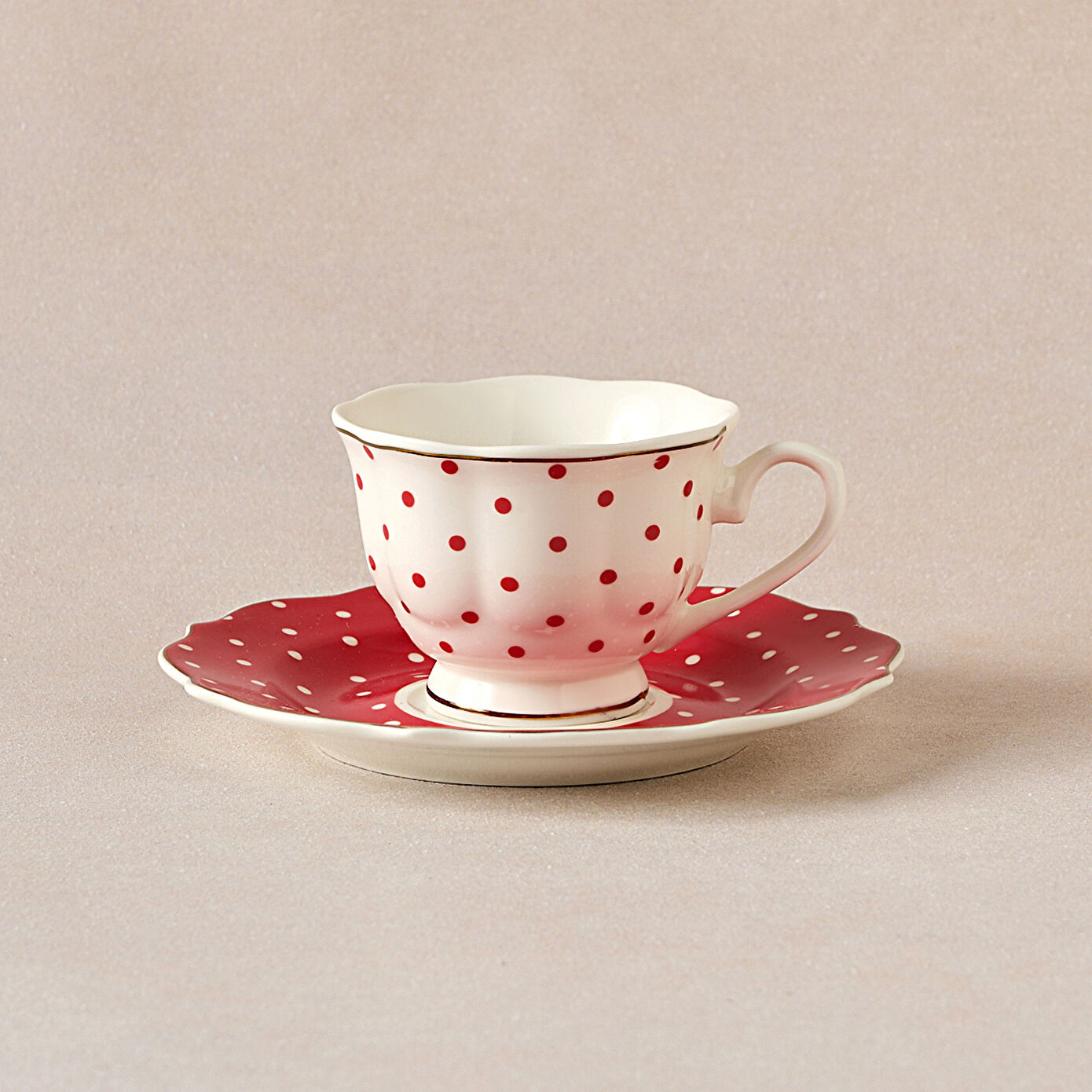 Karaca New Romantic Puantiyeli Kahve Fincanı 90 ml Kırmızı
