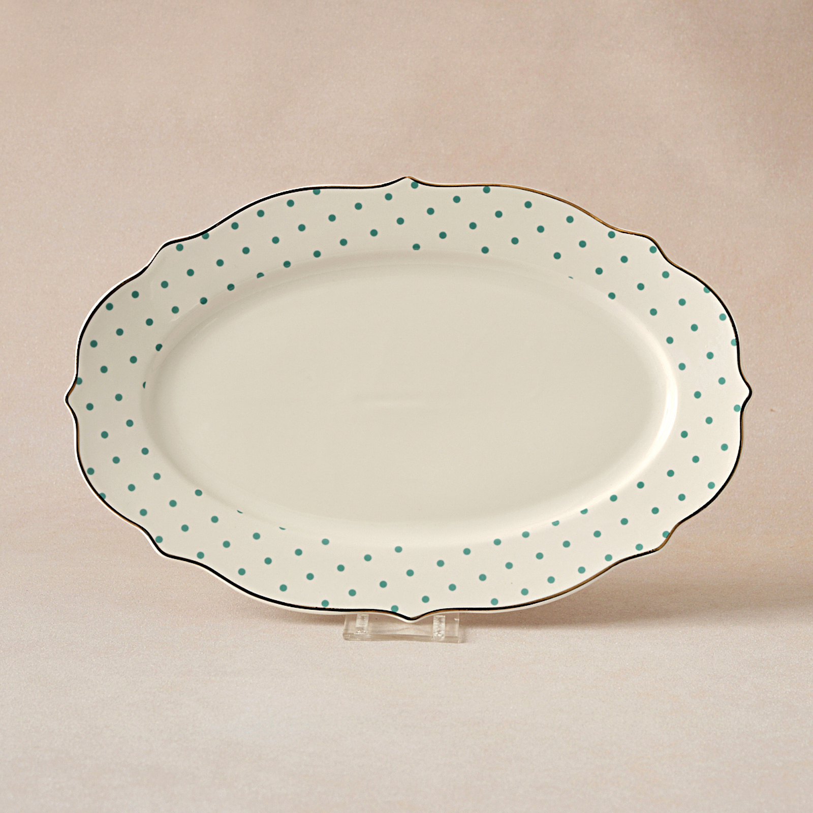 Karaca New Romantic Yeşil Puantiyeli Kayık Tabak 30 cm