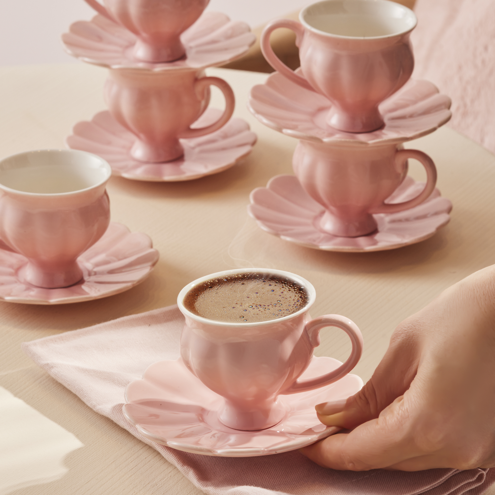 Karaca Ocha 6 Kişilik Kahve Fincan Takımı Pembe 90 ml