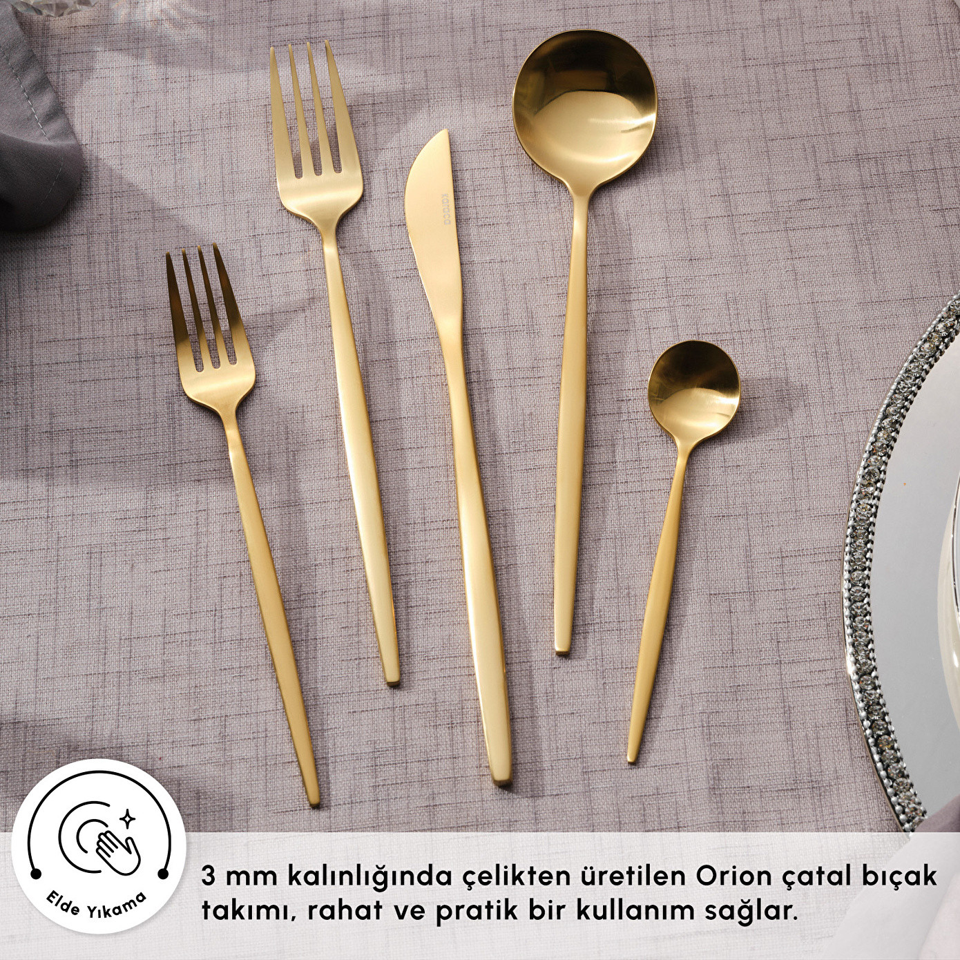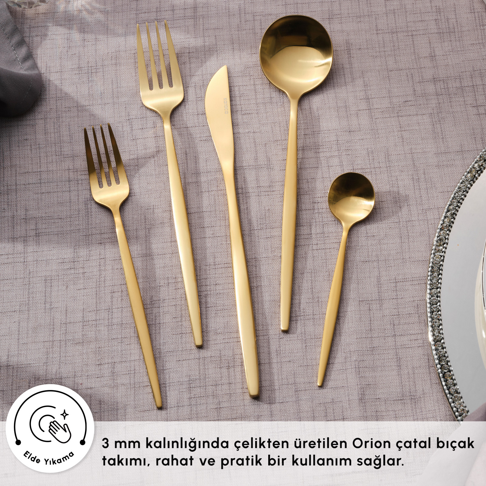 Karaca Orion 30 Parça 6 Kişiik Çatal Kaşık Bıçak Takımı Matte Gold