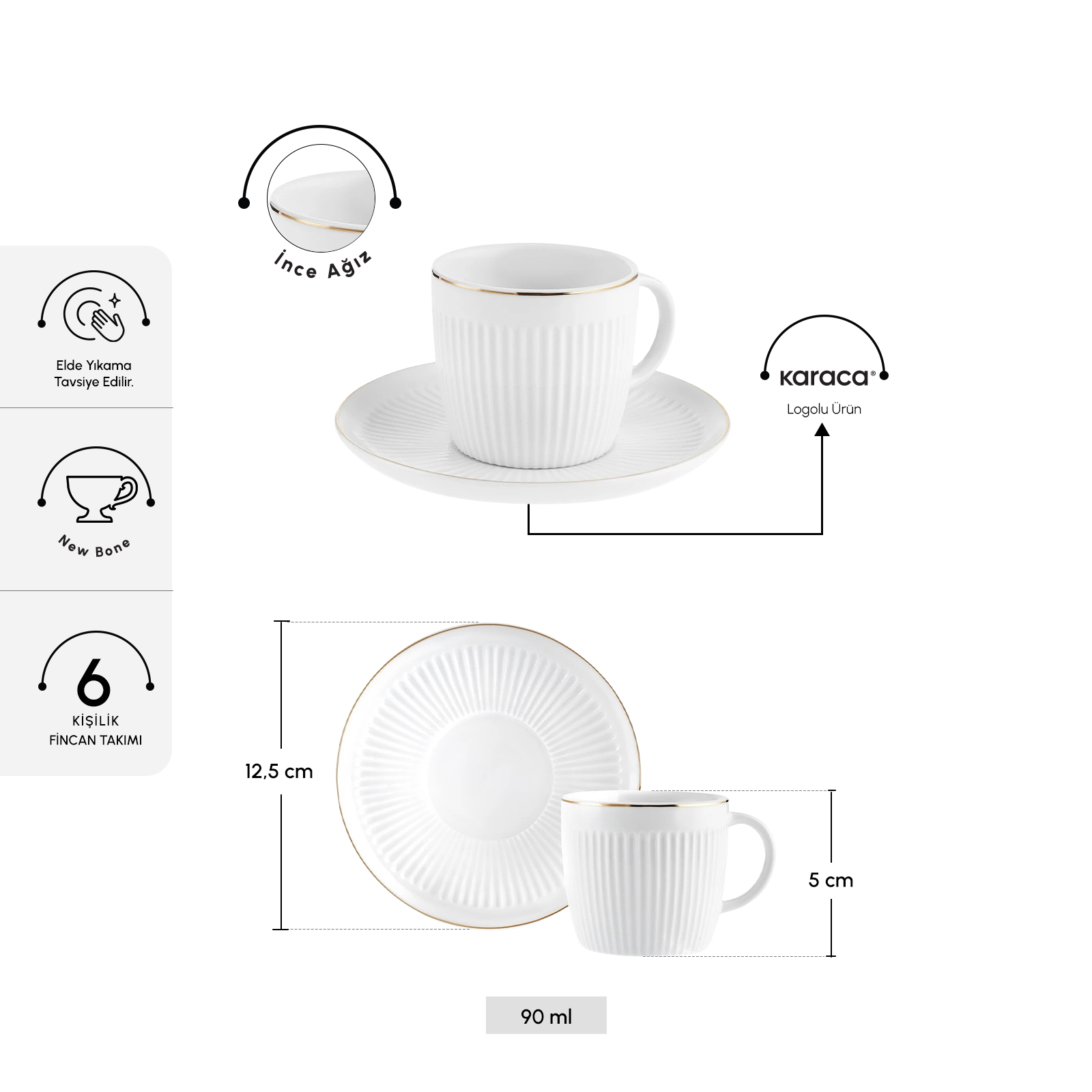 Karaca Pelin 6 Kişilik Kahve Fincan Takımı 90 ml