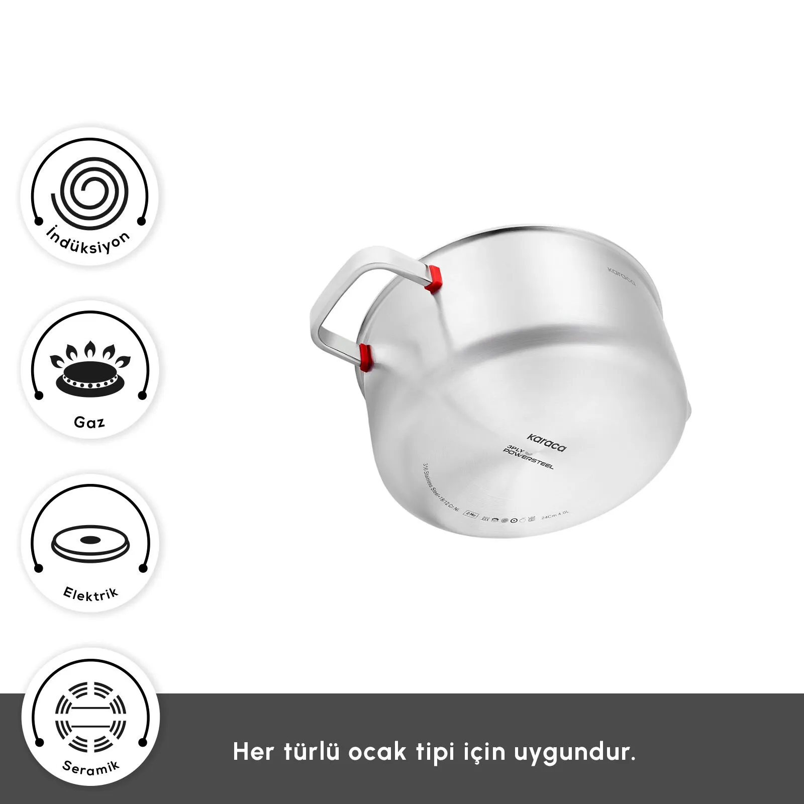 - Power steel ve 3 Ply ailemiz indüksiyona uygundur.