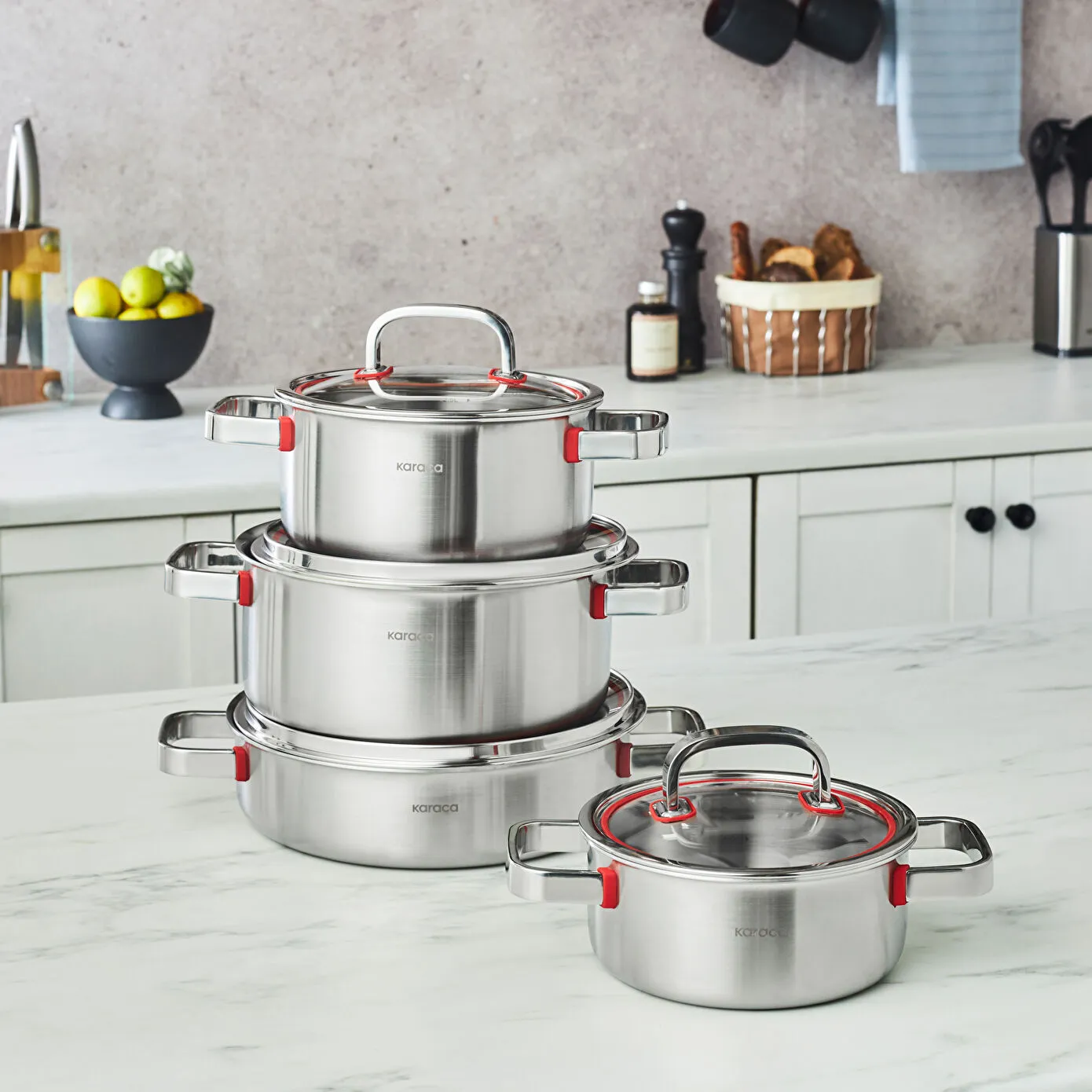 Karaca Powersteel 316+ 3Ply Artemis İndüksiyon Tabanlı 8 Parça Çelik Tencere Seti