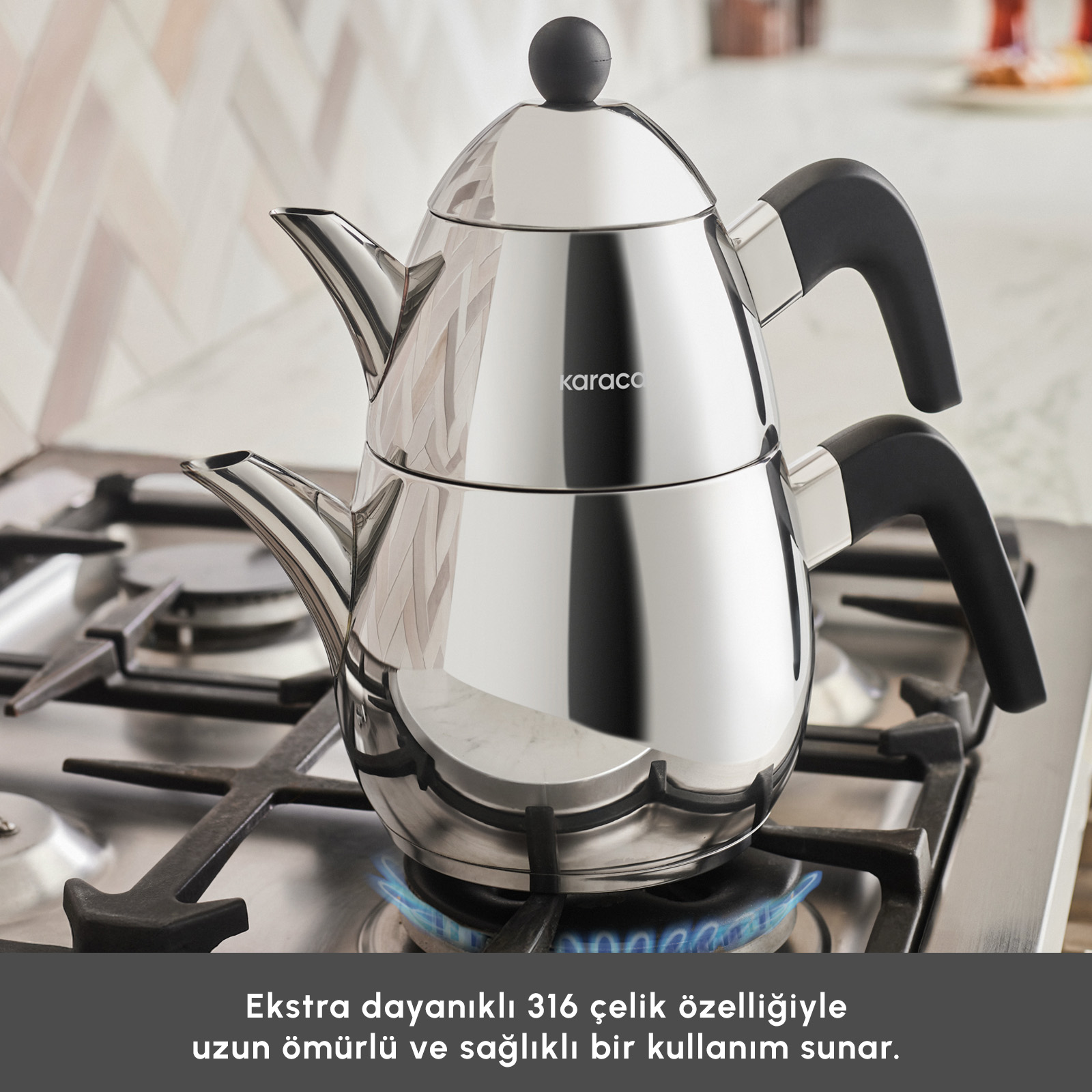 Karaca Powersteel Pro 316+ Tokyo Midi Çelik İndüksiyon Tabanlı Çaydanlık Takımı