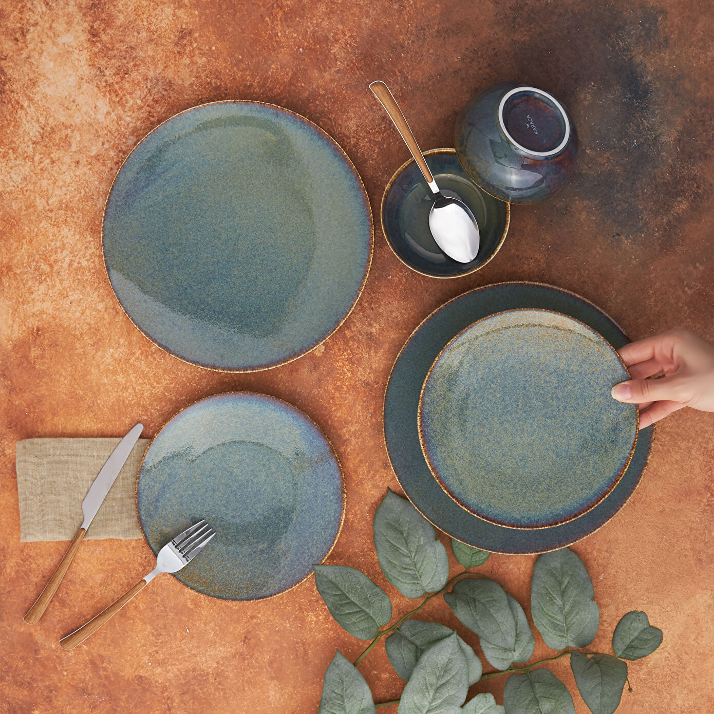 Karaca Reactive Emerald 18 Parça 6 Kişilik Porselen Yemek Takımı