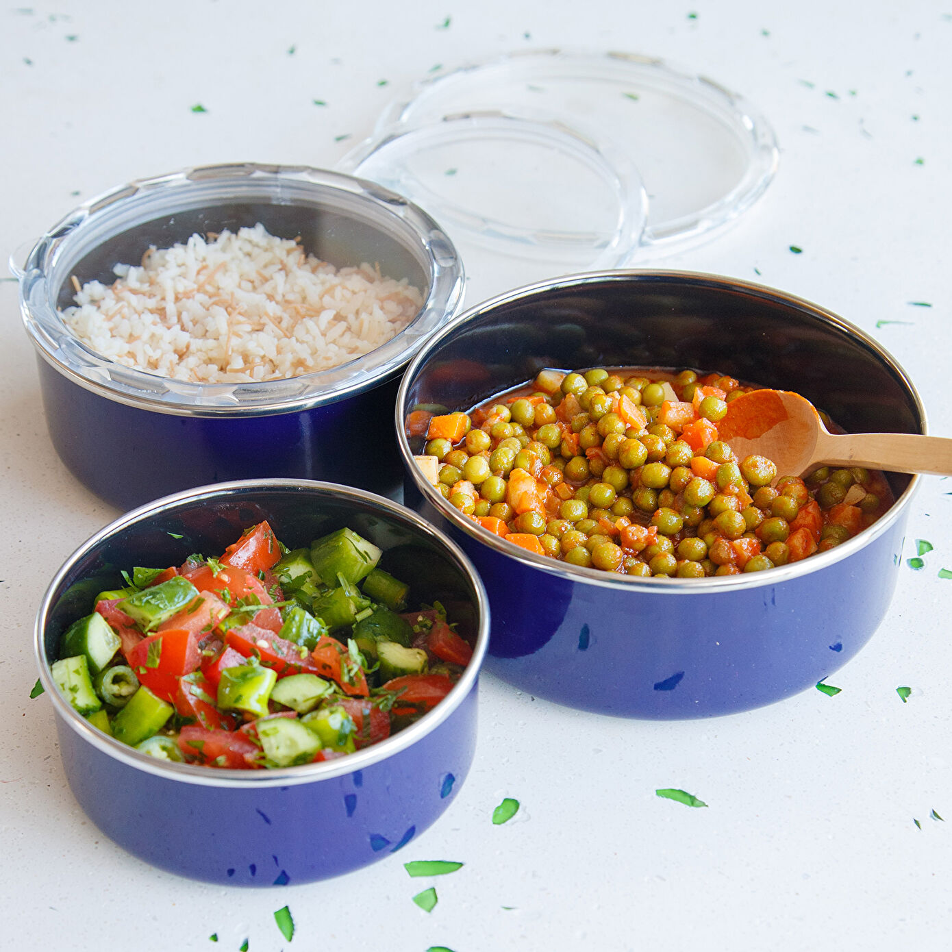 Karaca Refika'dan Lacivert Emaye 3'lü Saklama Kabı Seti