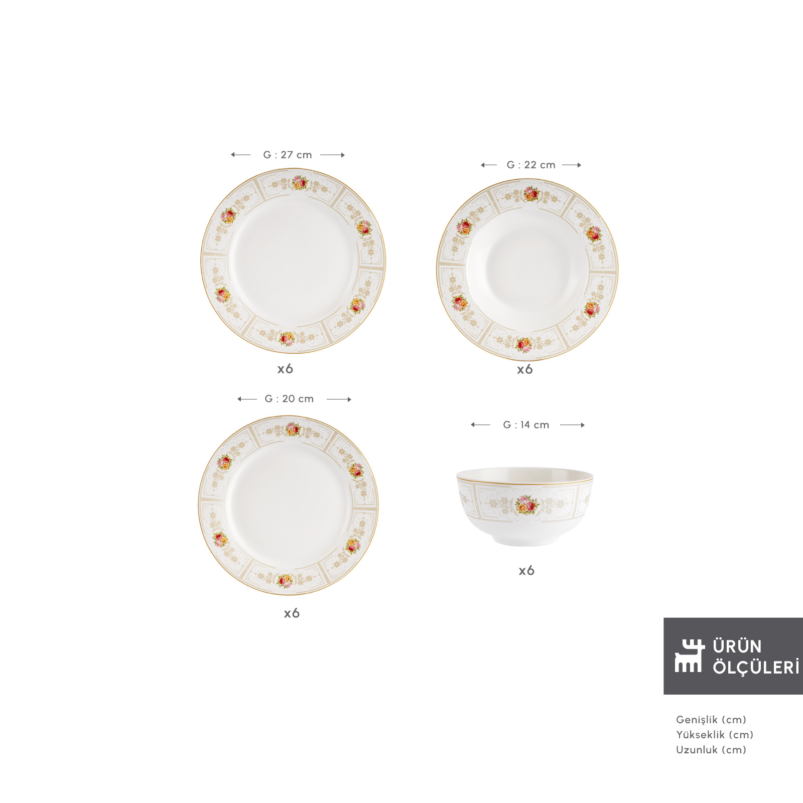 Karaca Forever Bone Reya 24 Parça 6 Kişilik Yemek Takımı