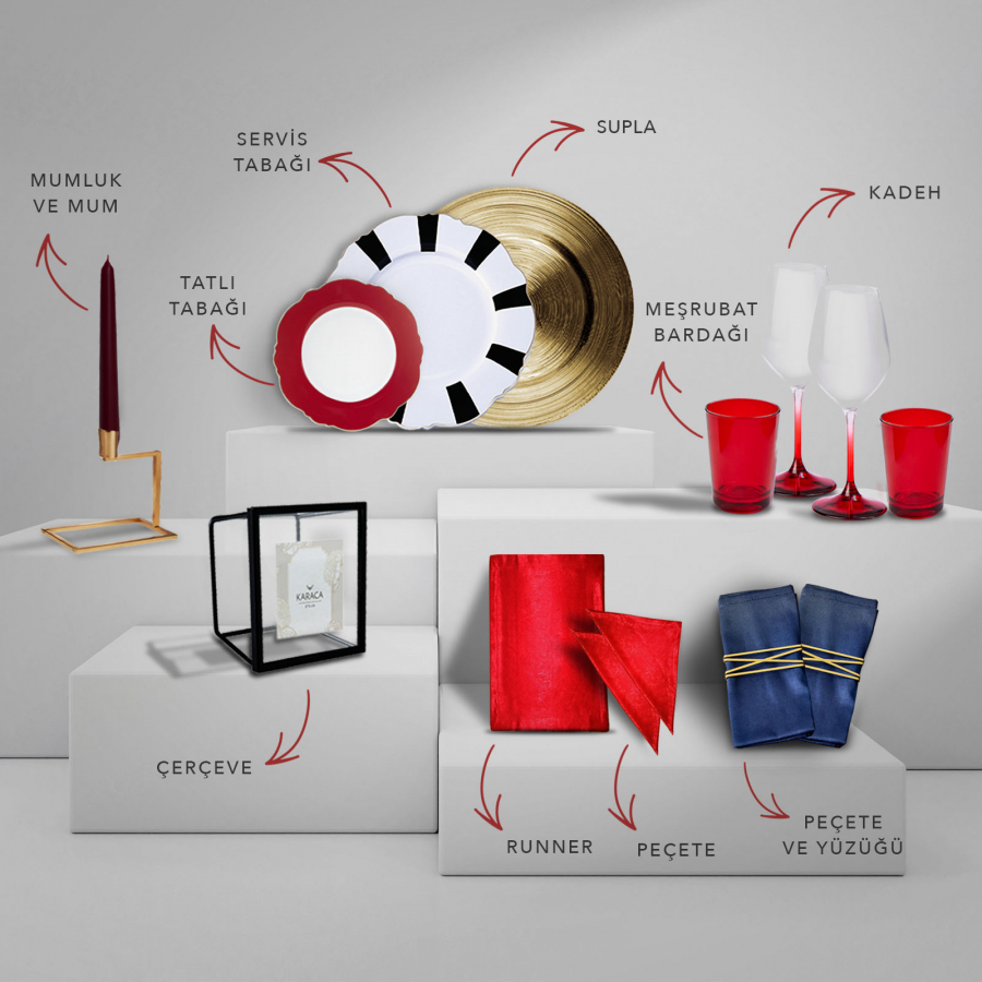 Karaca Romantik 2 Kişilik 20 Parça Sofra ve Dekorasyon Seti –Sweet Love