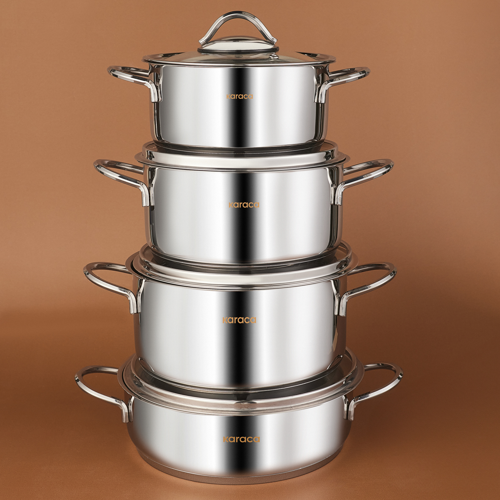 Karaca Powersteel 316+ Sakura Çelik İndüksiyon Tabanlı 8 Parça Tencere Seti