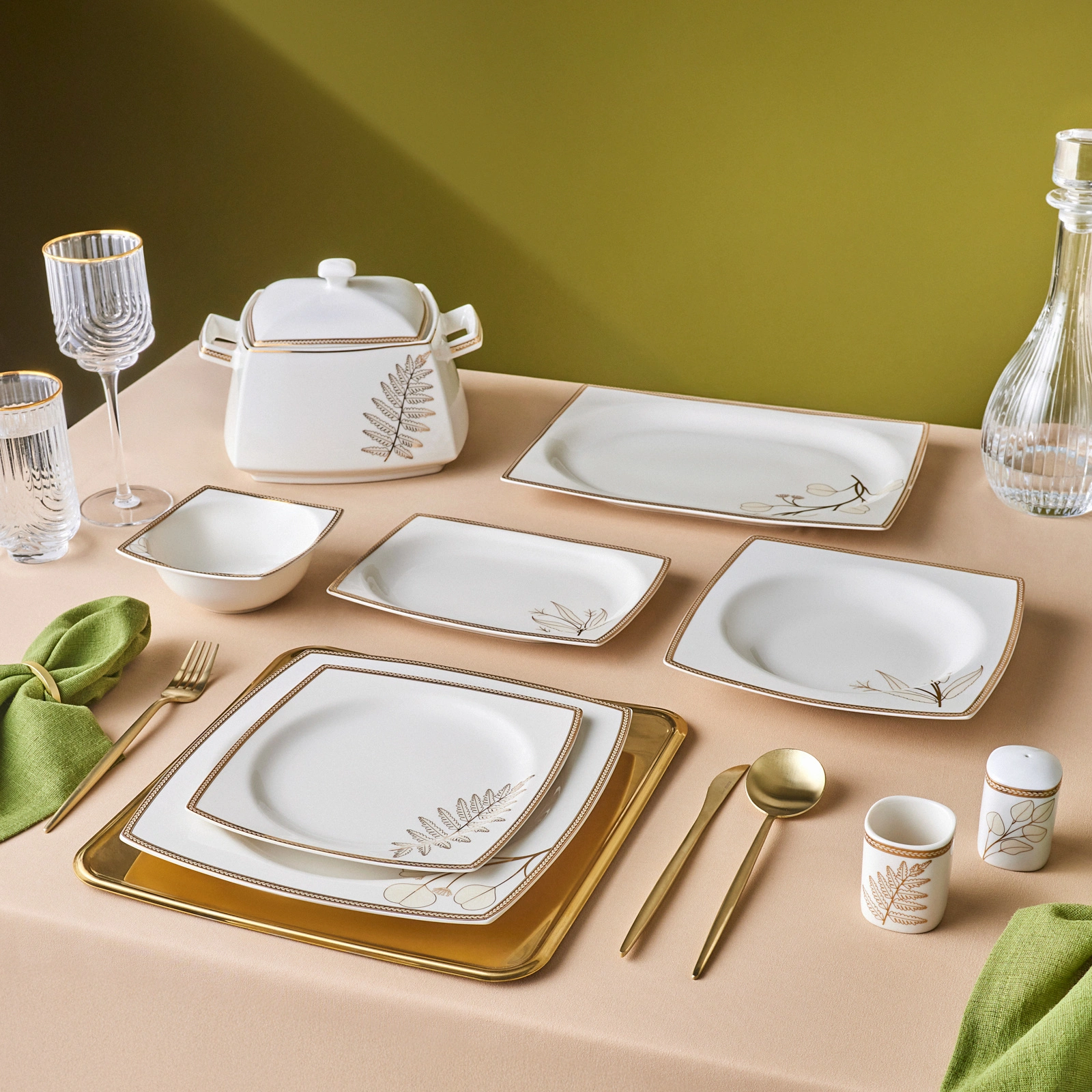 Karaca Square Bone Hazel 60 Parça 12 Kişilik Kare Yemek Takımı