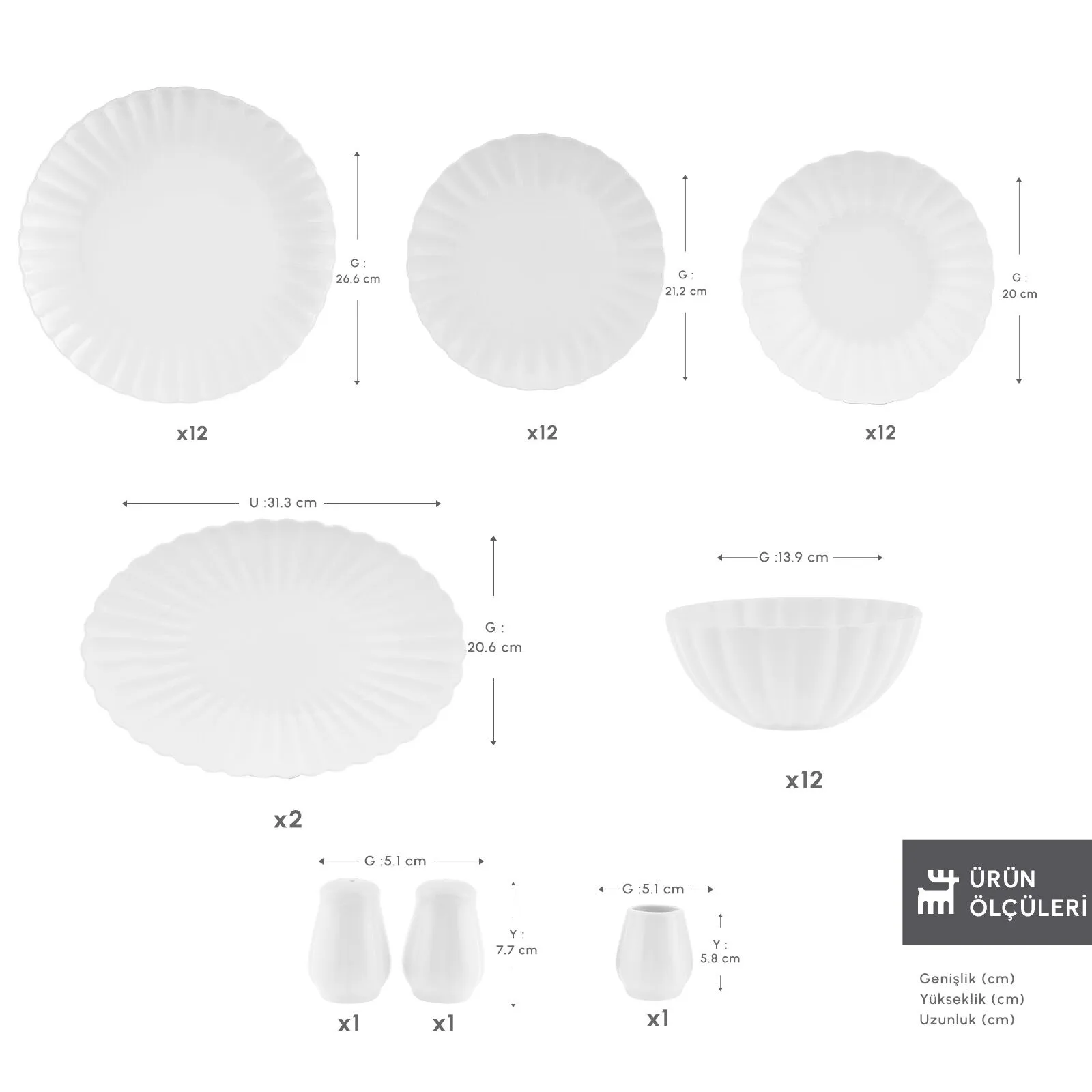 - 12 Adet Servis Tabak 26,6 x 2,68 cm (Genişlik x Yükseklik)