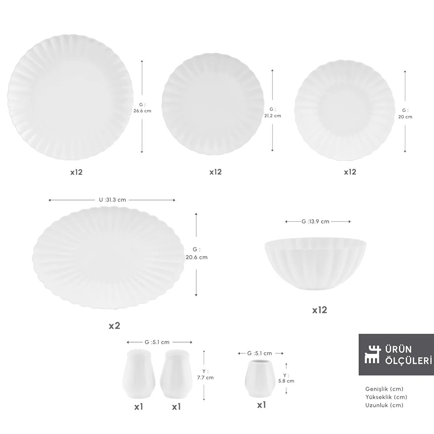 Karaca Stream Bone Umbrella 53 Parça 12 Kişilik Yemek Takımı Beyaz