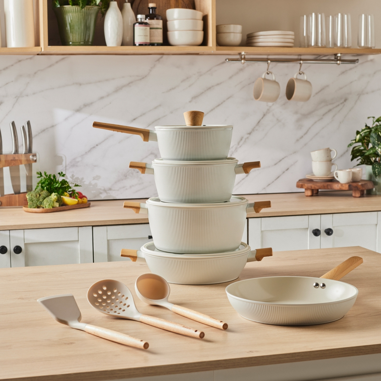Karaca x Refika Swiss Crystal Pureline İndüksiyon Tabanlı 12 Parça Tencere Seti Almond Cream
