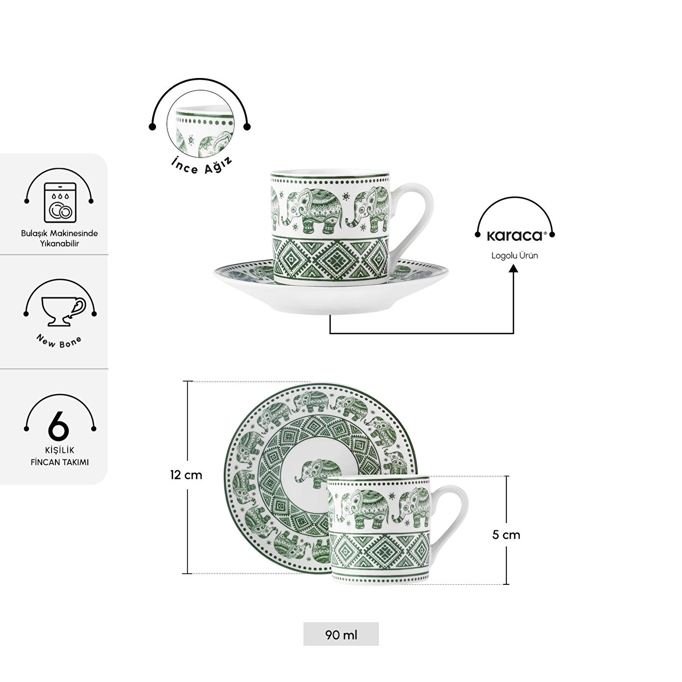 Karaca Teri 6 Kişilik Kahve Fincanı 90 ml