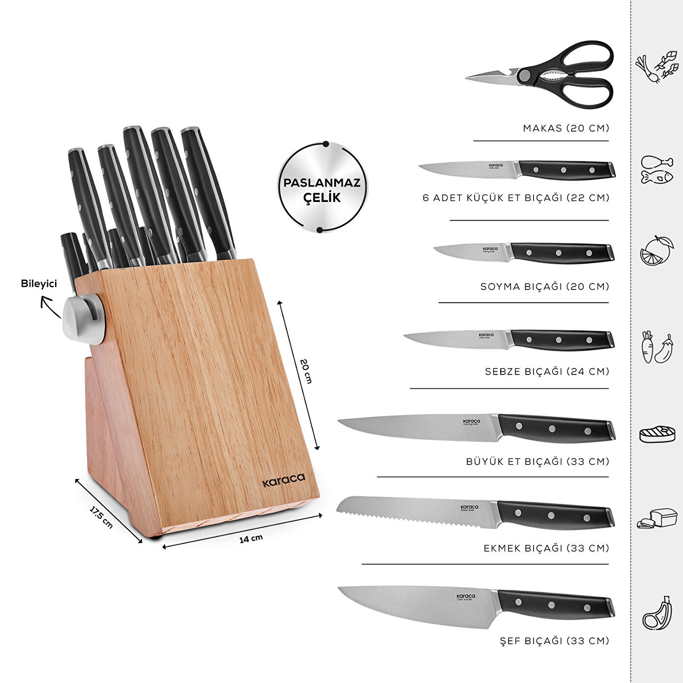 - Şef Bıçağı: 33 cm