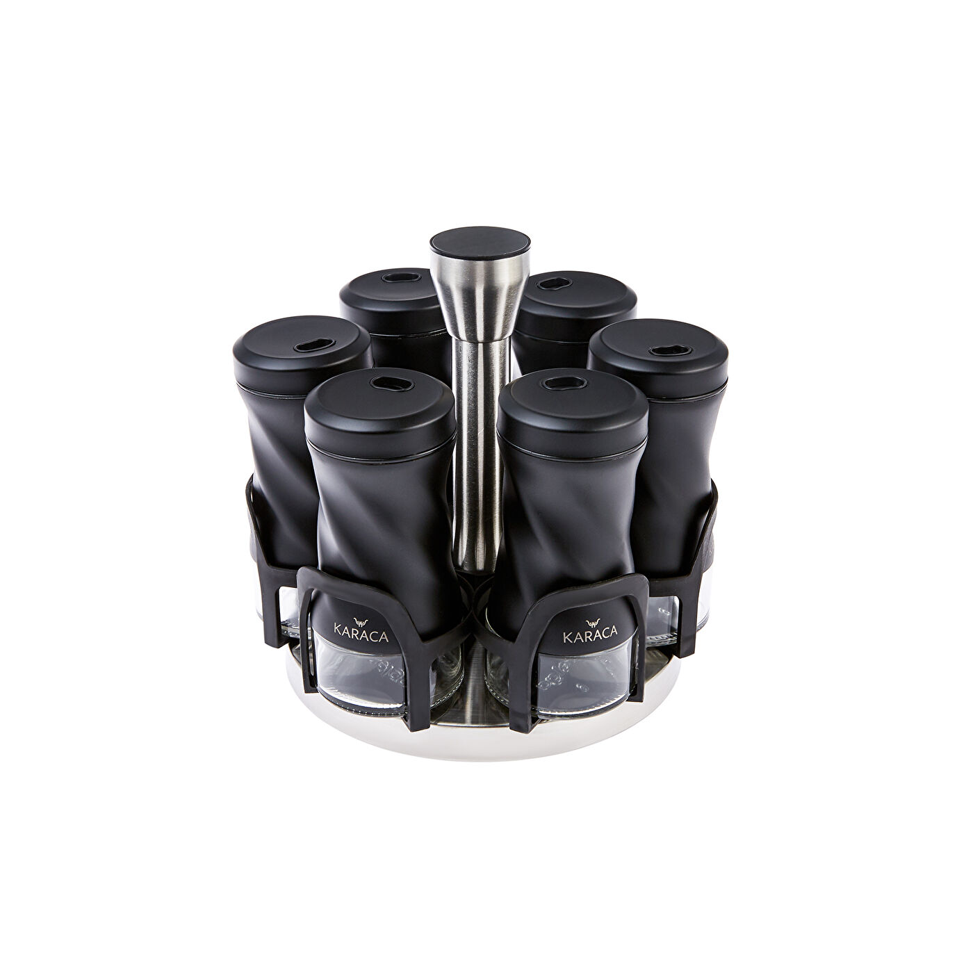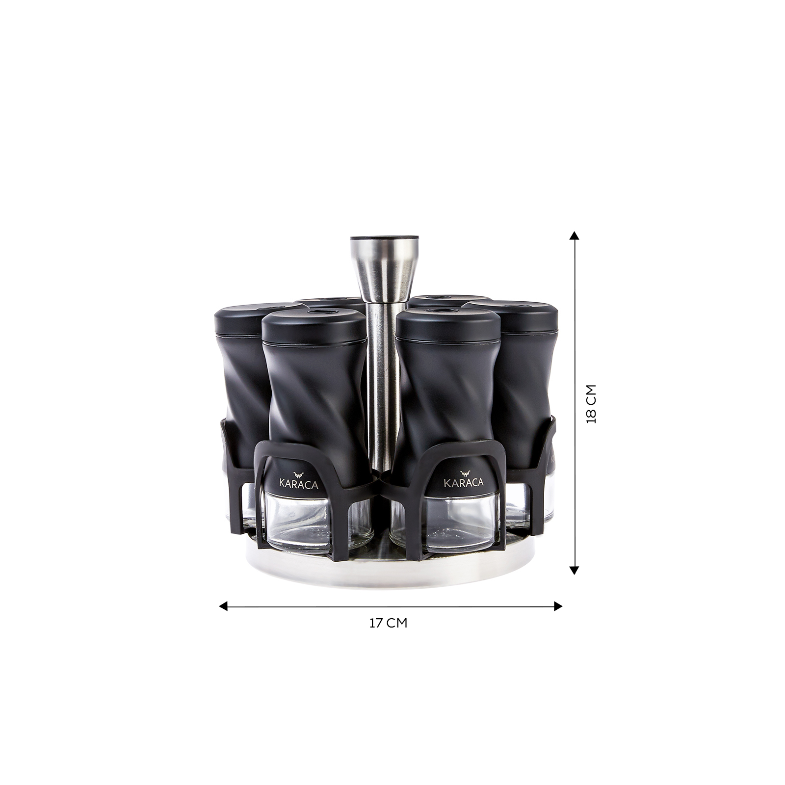 Karaca Tottori Black 7 Parça Yuvarlak Cam Baharat Takımı