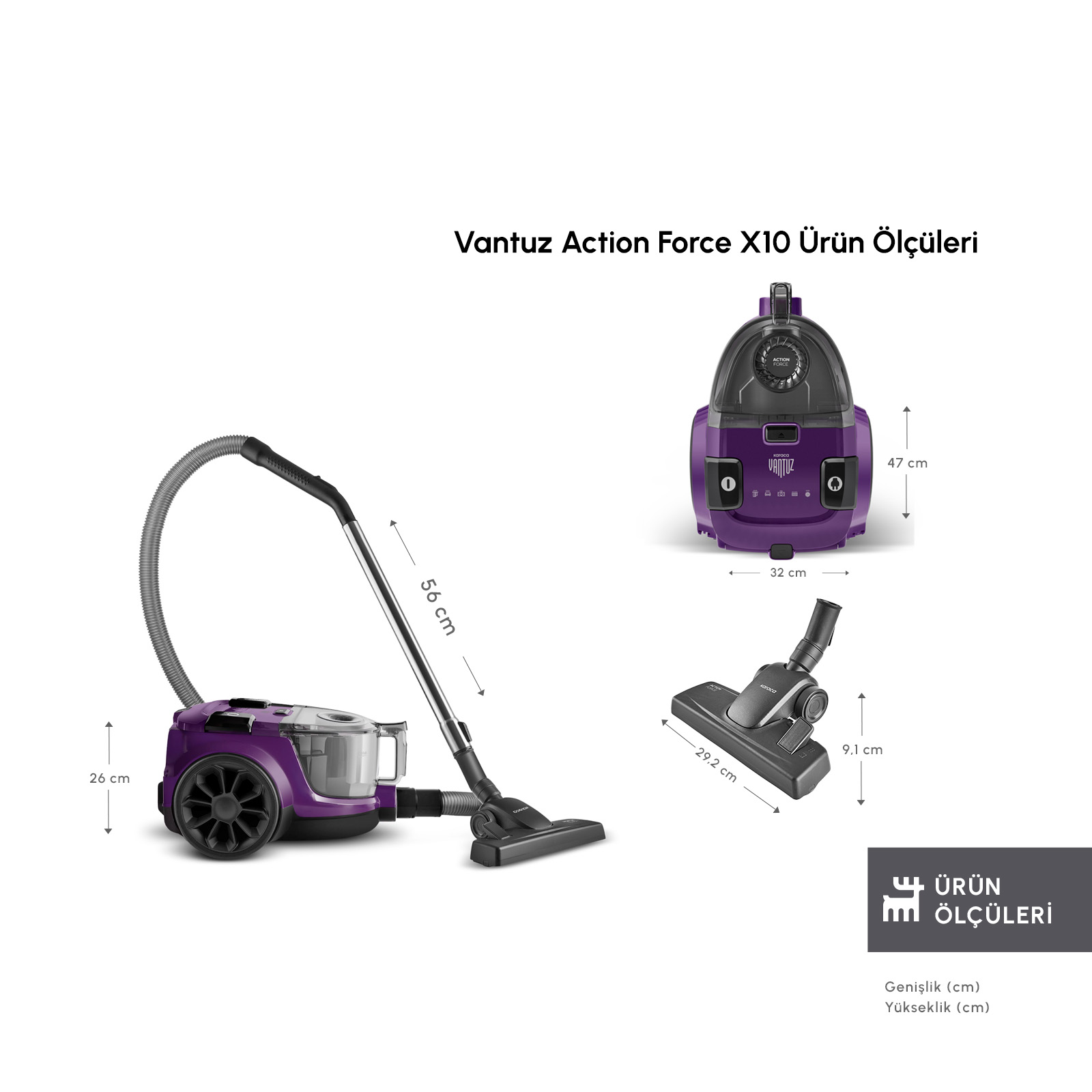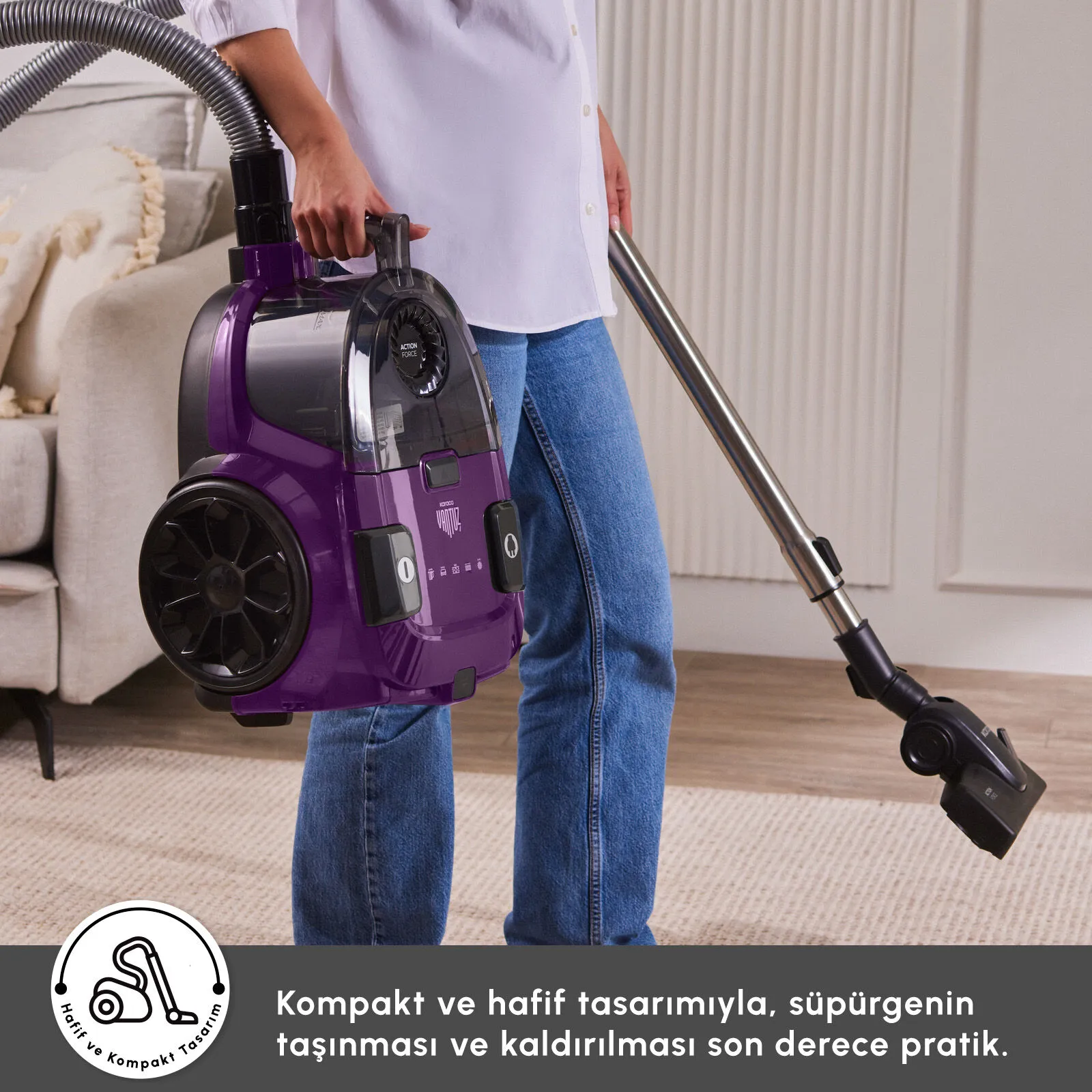 Karaca Vantuz Action Force X10 2 Lt Toz Torbasız Hazneli Elektrikli Süpürge Royal Purple 899 W