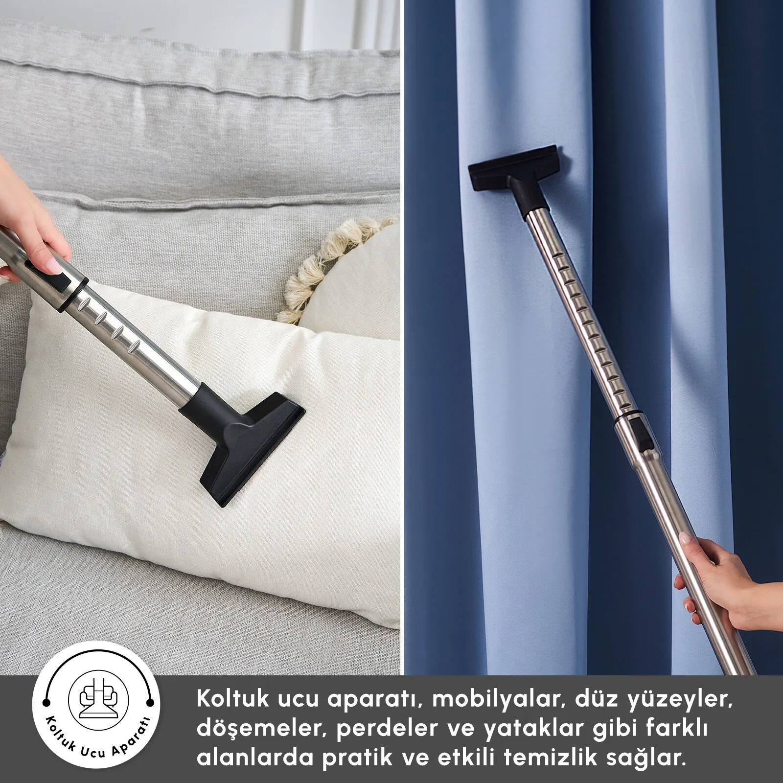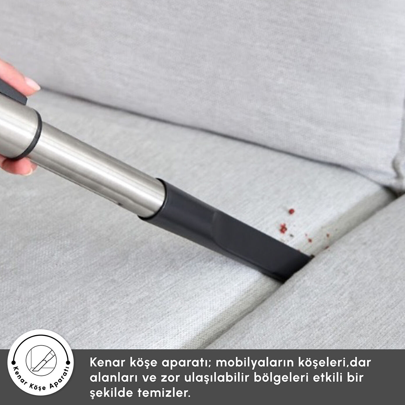 - Parke - Halı Fırçası (fırça üzerinde yer alan minimum ayar ile emiş performansını düşürmeden kolayca süpürebilir, maximum ayar ile yüksek vakum sağlayarak tüm tozu ve kiri vantuzlayabilirsiniz)