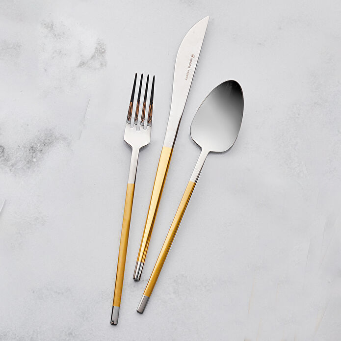 Karaca Vibe 84 Parça 12 Kişilik Elegance Yarım Mat Gold Kutulu Çatal Kaşık Bıçak Takımı