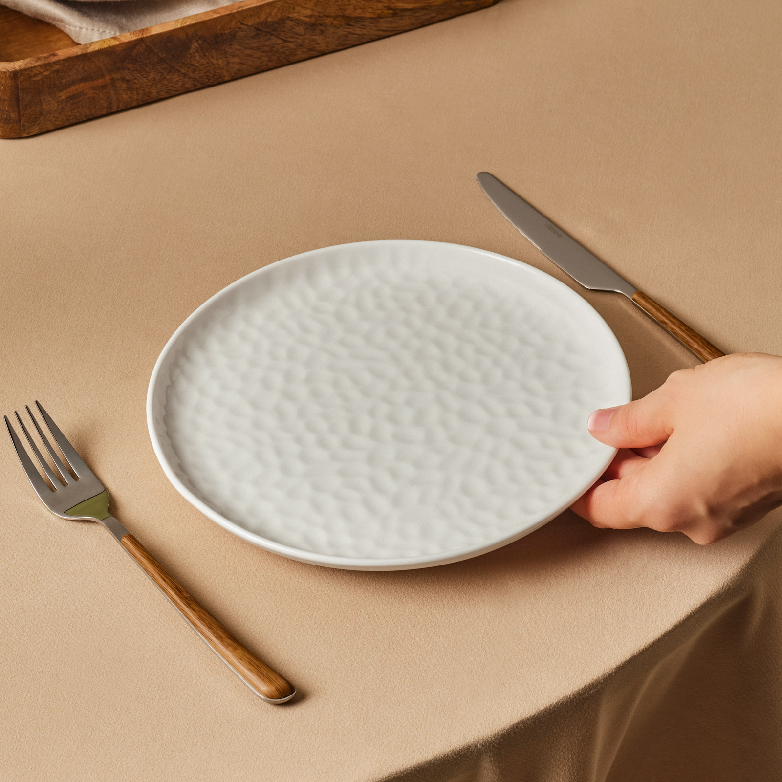 Karaca x Refika Bembeyaz Yuvarlak Pasta Tabağı 22 cm