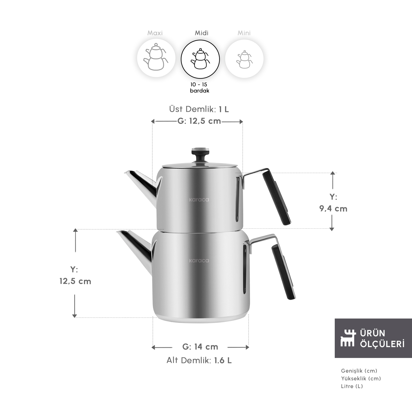 Karaca Yasemin İndüksiyon Tabanlı Çelik Midi Çaydanlık Takımı