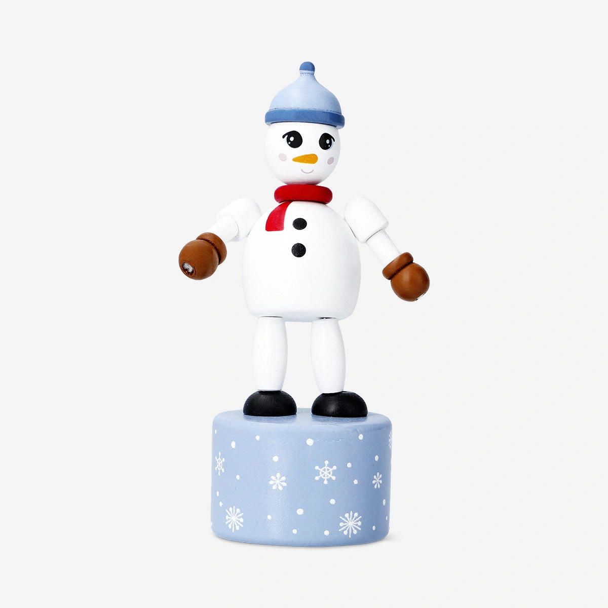 Kış mevsiminin neşesini evinize taşıyan bu sevimli kar adamı itme oyuncağı, eğlenceli tasarımıyla çocukların ve koleksiyon severlerin favorisi oluyor. Ahşaptan üretilen oyuncak, 4.8 x 12.5 x 6.5 cm ölçülerinde olup masaya, rafa veya oyun köşesine keyifli bir dokunuş katıyor. Alt kısmına hafifçe bastığınızda kar adamı sallanıyor ve hareket ediyor; bu da gününüze neşeli ve eğlenceli bir atmosfer kazandırıyor.