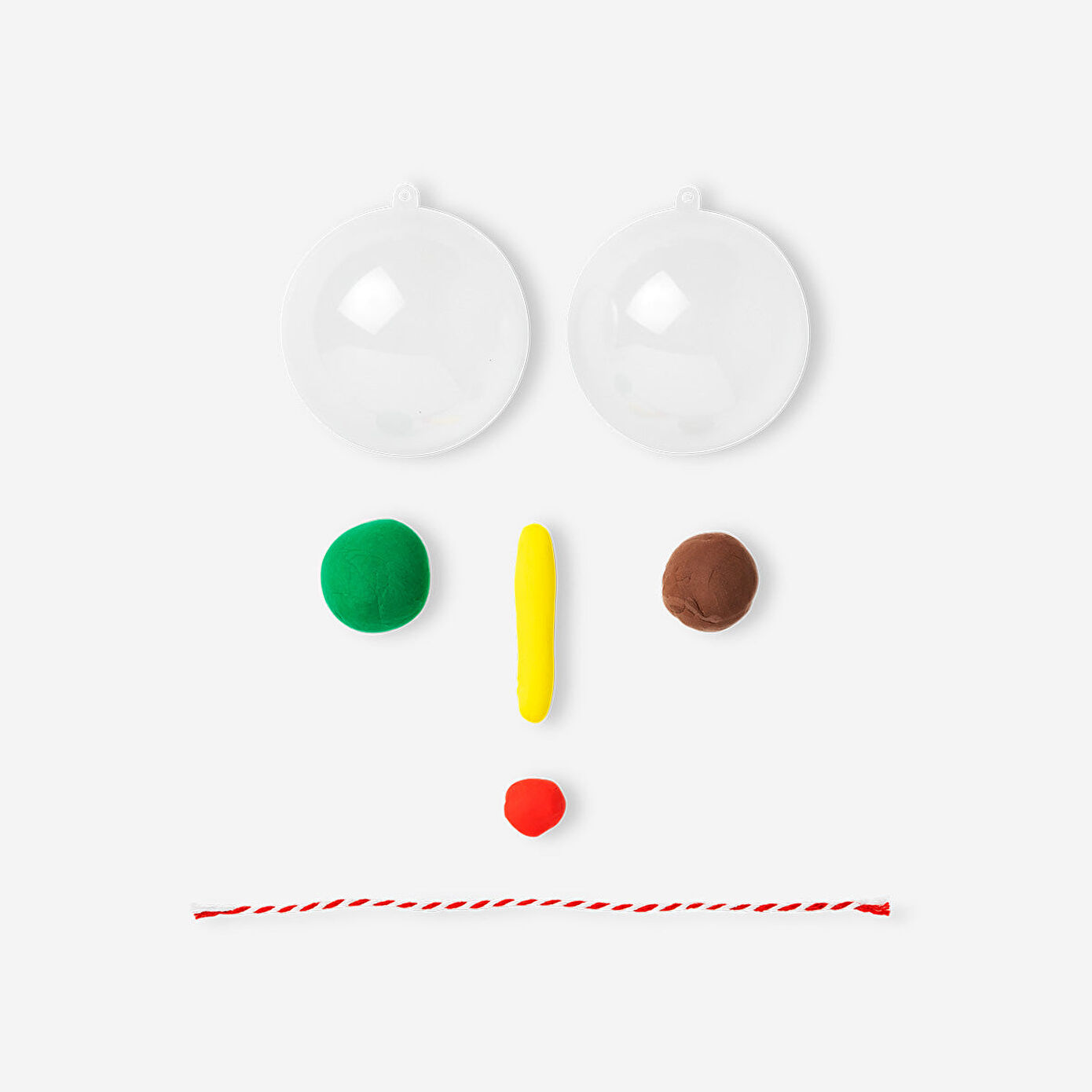 Setin içinde, kendi sevimli yılbaşı ağacını şekillendirip süslemen için gereken tüm malzemeler bulunur: hafif yapılı kil ve şeffaf plastik süs küresi dahil. 8 cm çapındaki kompakt boyutuyla hem yetişkinler hem de çocuklar için ideal bir aktivite. Kırmızı-beyaz askı ipi sayesinde ağacına, kapı süsüne ya da masa dekoruna kolayca asabilirsin.